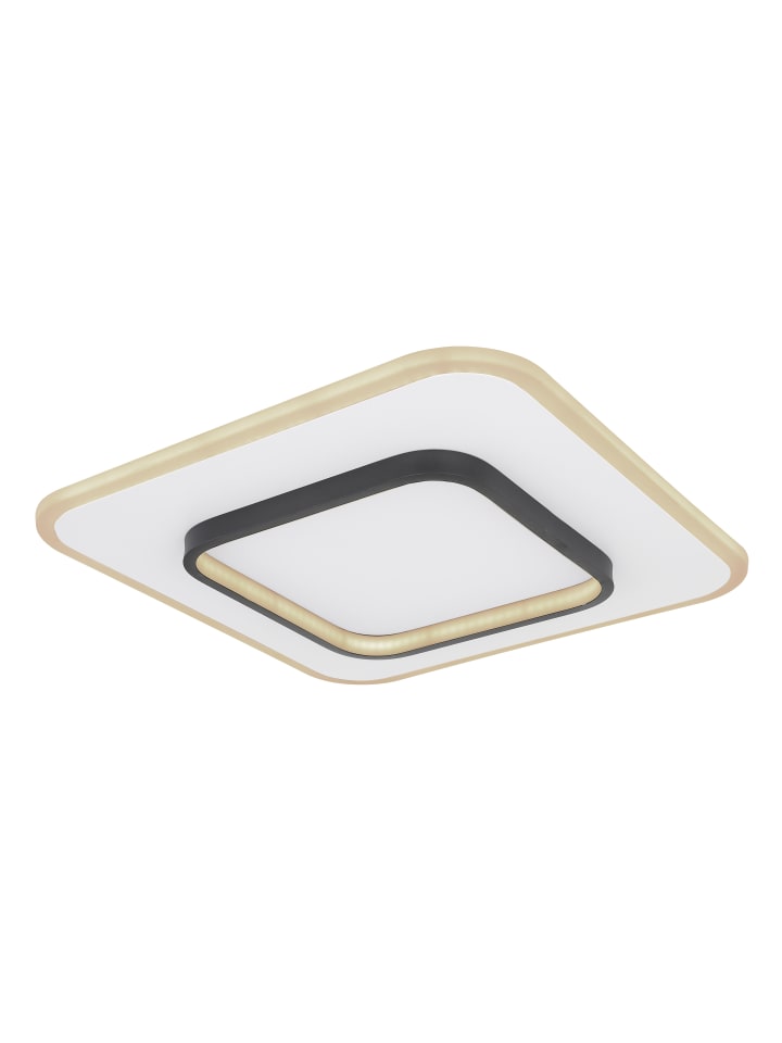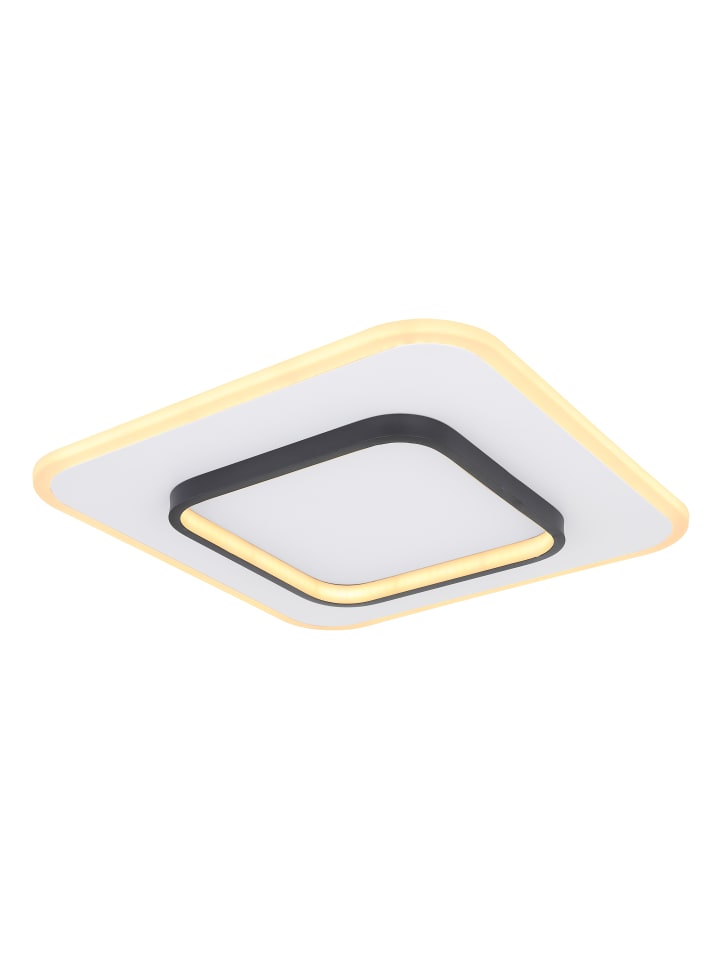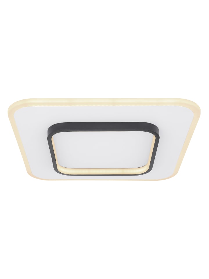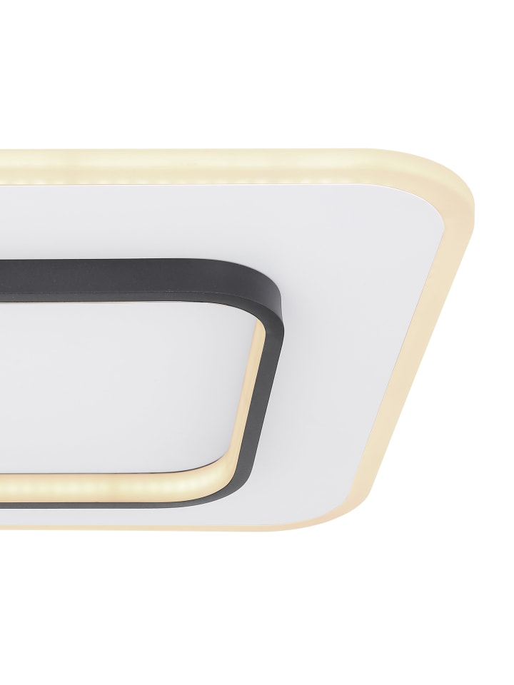 Потолочный светильник, металлический, белый; опаловый акрил, черный; регулировка яркости; блокировка цвета; функция памяти; ночник; пульт дистанционного управления; размеры (Д x Ш x В): 458 x 458 x 60 мм; в комплект входит светодиод мощностью 50 Вт 230 В, источник света 6100 лм, светоотдача 2500 лм, цветовая температура 3000-6000 К