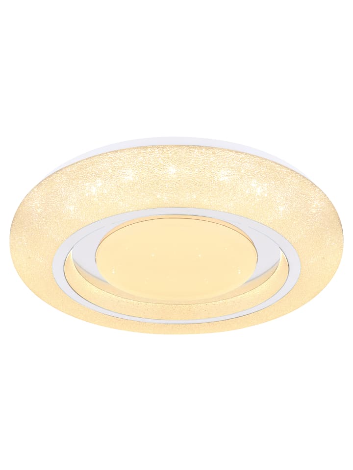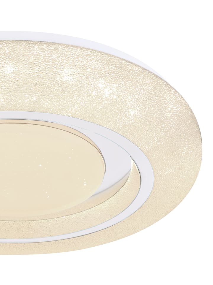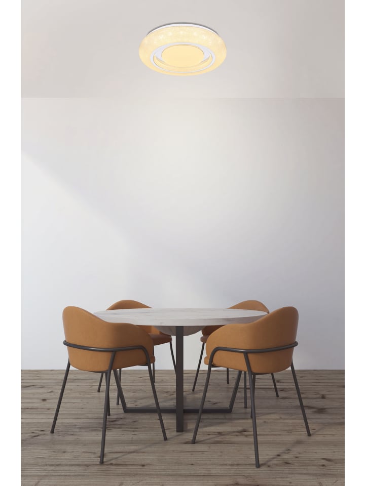 Потолочный светильник, белый металл, опаловый акрил с блестками, хромированное кольцо, несколько уровней яркости с настенным переключателем, возможность настройки цветов, диаметр: 380 мм, высота: 75 мм, в комплекте светодиод 24 Вт 230 В, источник света 2500 лм, световой поток 1560 лм, цветовая температура 2700/4000/6500 К