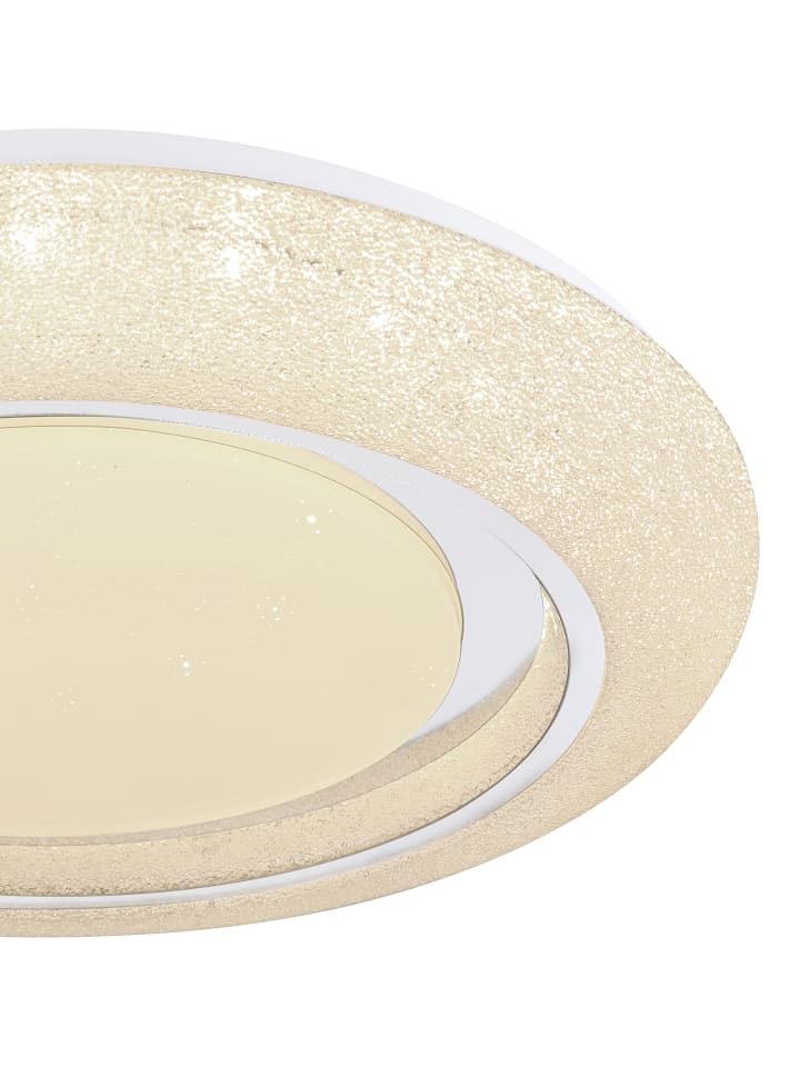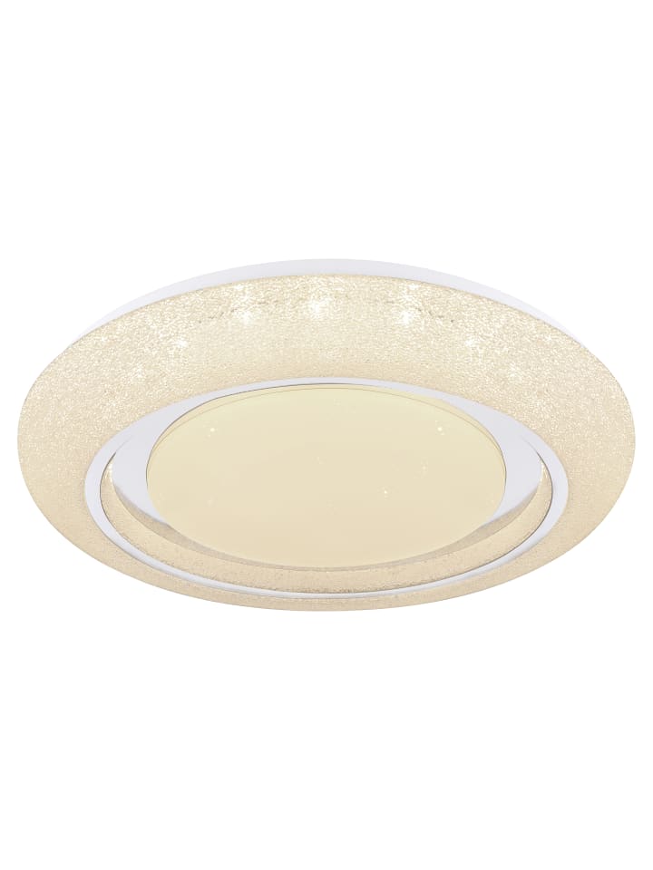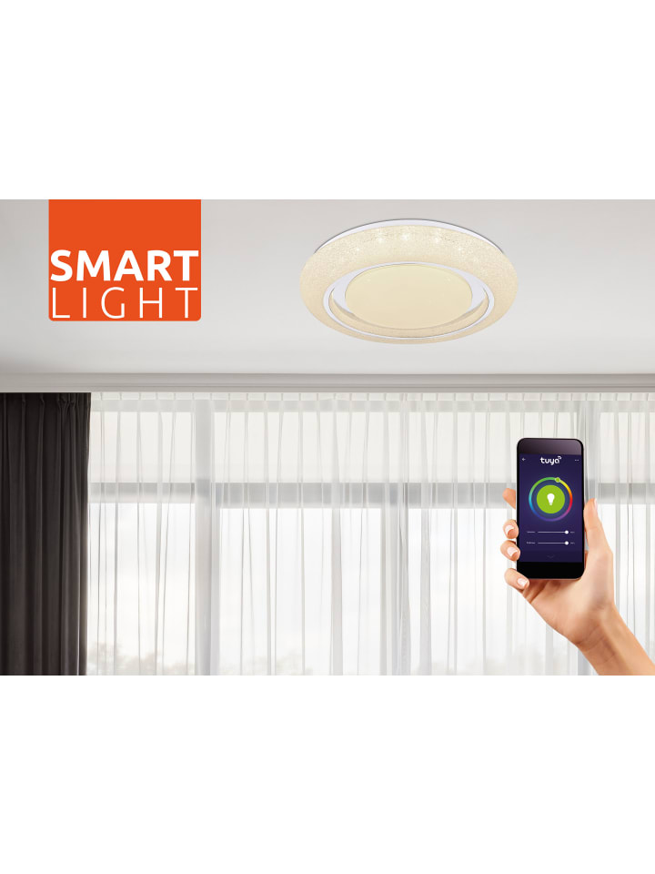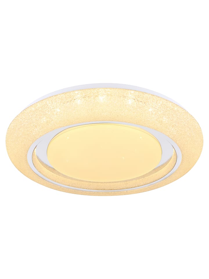 Потолочный светильник, металлический, белый; опаловый блестящий акрил; хромированное кольцо; регулировка яркости; блокировка цвета; SmartLight; совместимость с приложением; функция памяти; ночник; дистанционное управление; в комплекте 2 батарейки типа ААА; совместим с Smart Home и Alexa; диаметр: 480 мм; высота: 70 мм; в комплекте светодиод мощностью 28 Вт 230 В; источник света 430-3500 лм; световой поток 270-2200 лм; цветовая температура 3000-6000 К