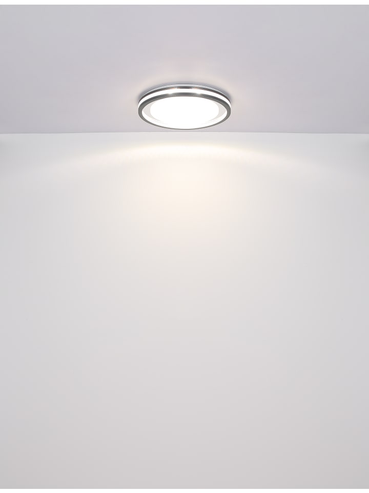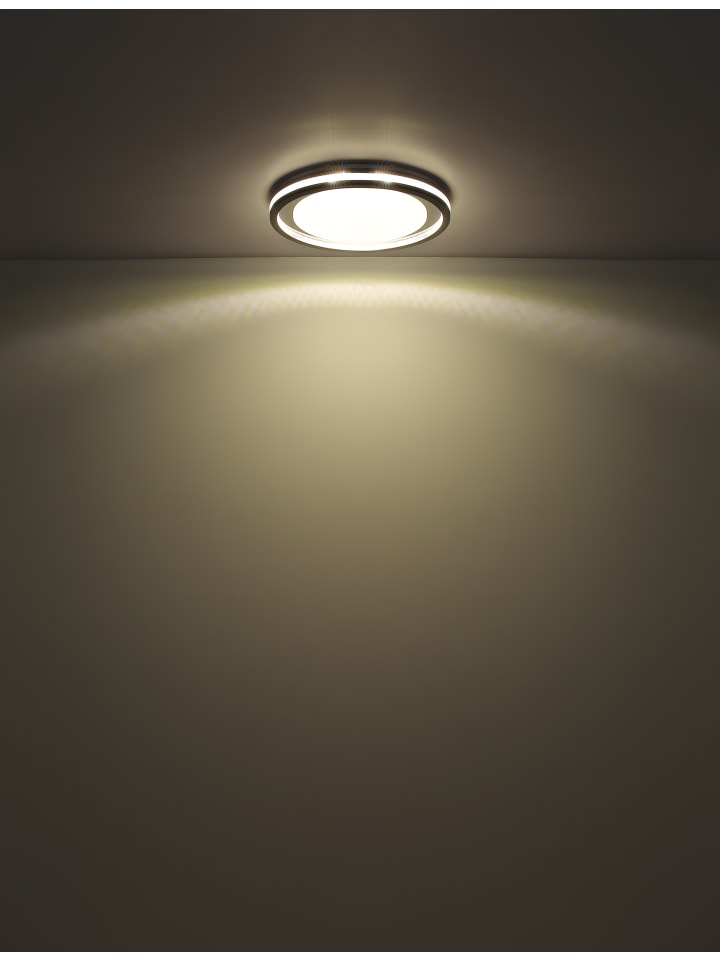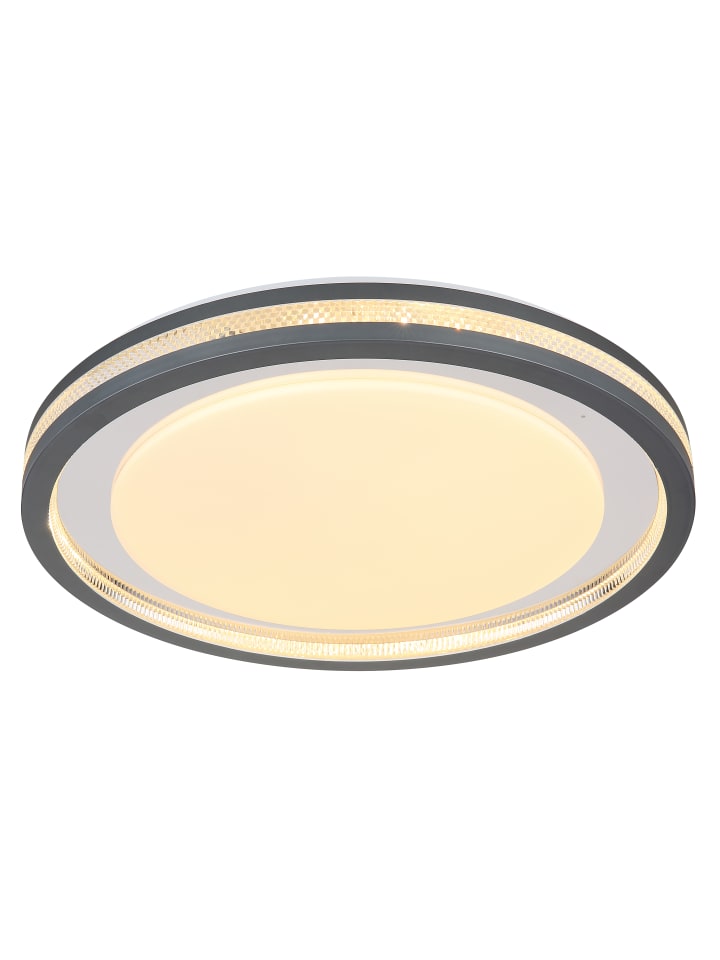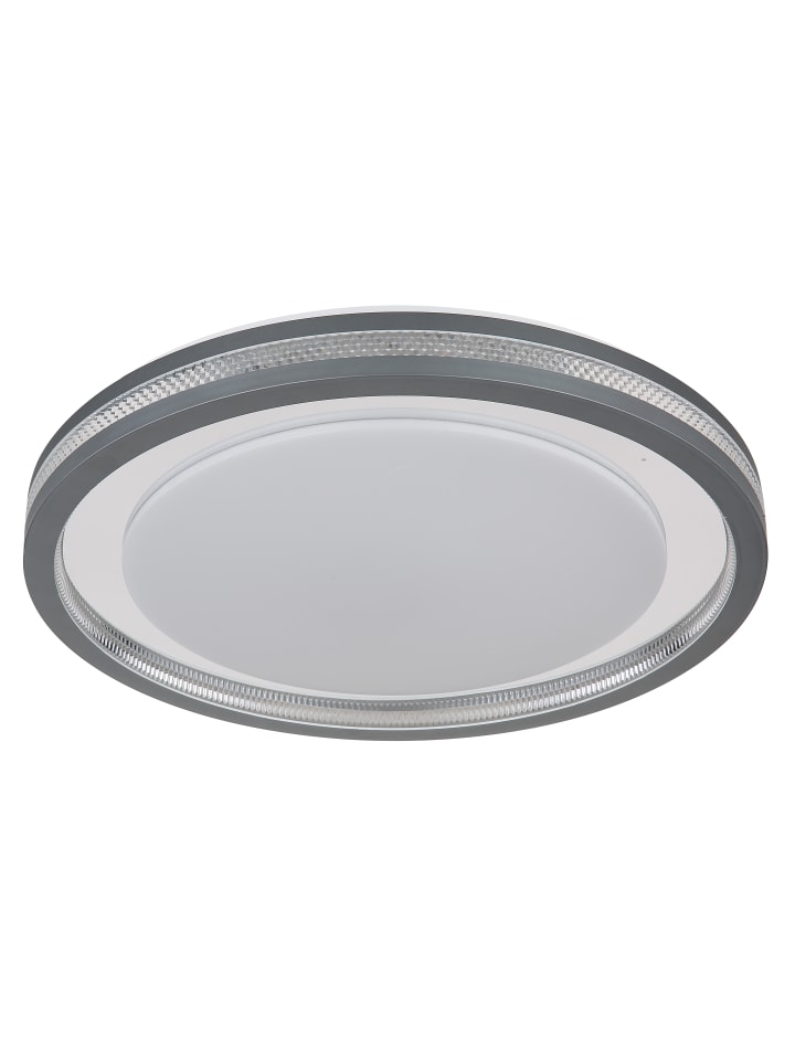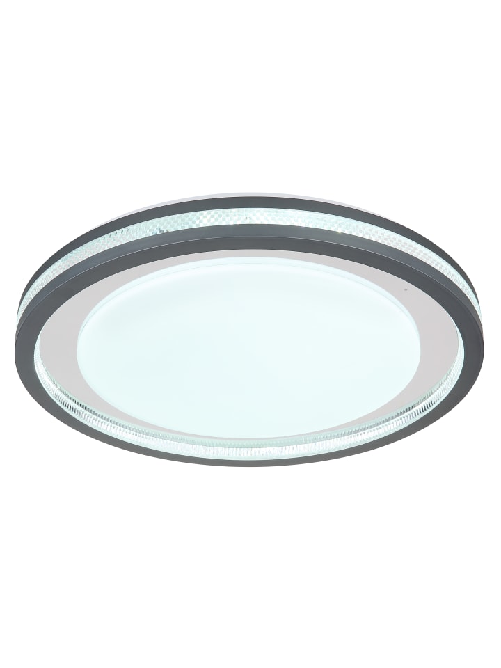 Потолочный светильник, металл, белый матовый; пластик, серый матовый; опаловый акрил; прозрачный акрил, кристаллический эффект; хромированный пластик; регулировка яркости, несколько уровней с помощью настенного переключателя; возможность фиксации цветов; функция памяти; ночник; таймер; пульт дистанционного управления; батарейки в комплекте (2 x AAA); диаметр: 478 мм; высота: 67 мм; в комплект входит светодиод 30 Вт 230 В, источник света 340-3400 лм, световой поток 170-1700 лм, цветовая температура 2700-6500 K