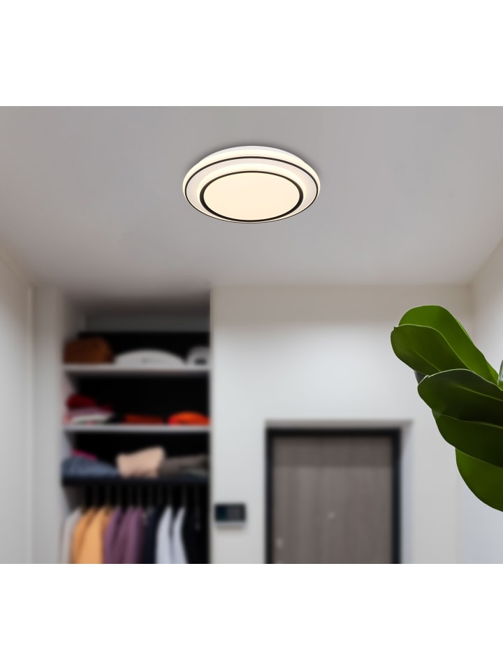 Потолочный светильник, металл, белый матовый; акрил, черный матовый; акрил, опаловый; ø: 390 мм, H: 70 мм; в комплекте светодиод 24 Вт 230 В, источник 2600 лм, световой поток 1400 лм, цветовая температура 3000 К