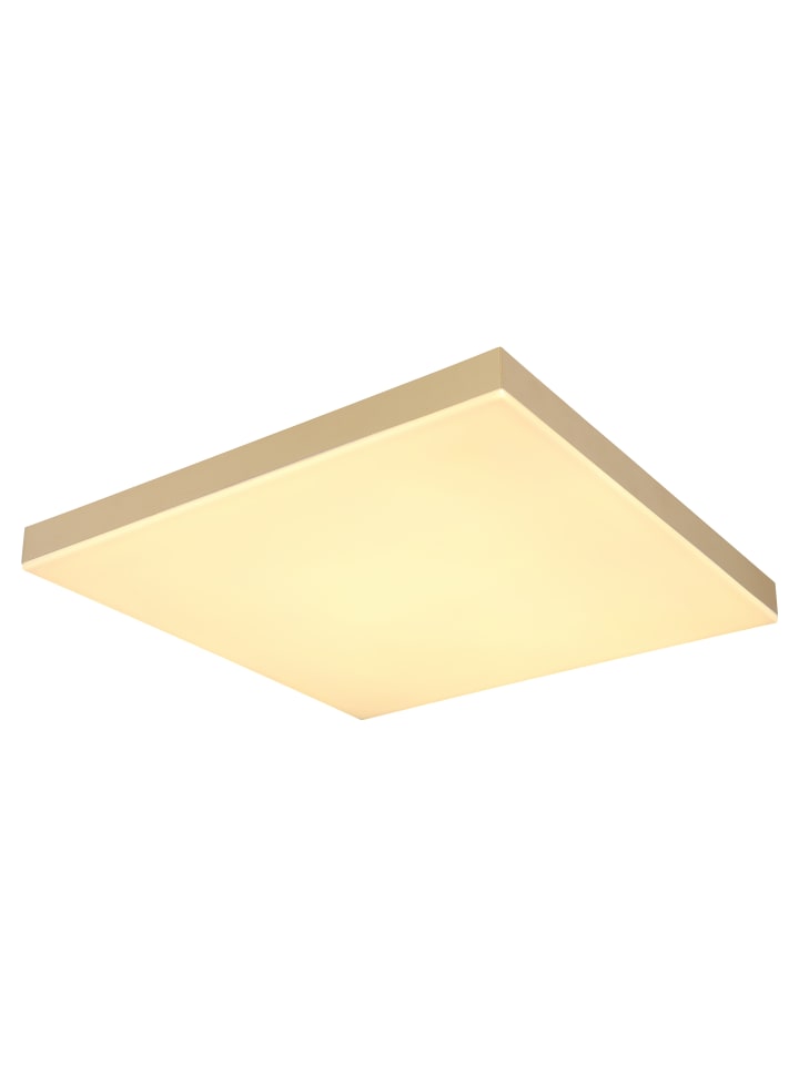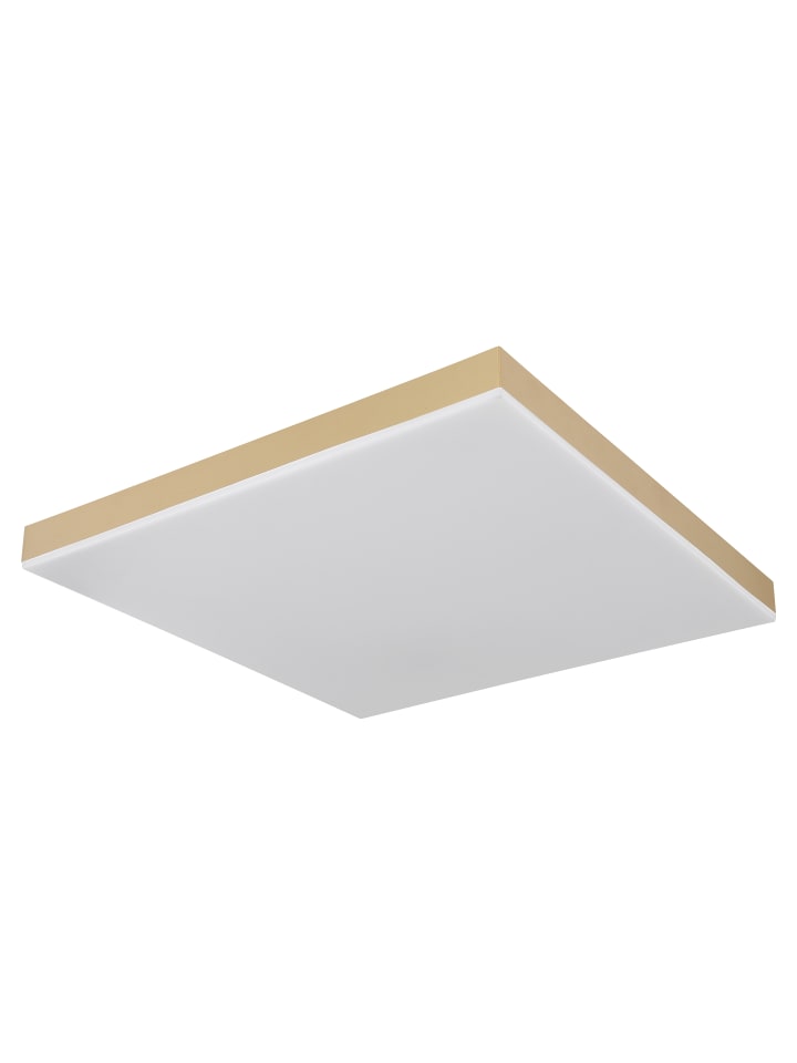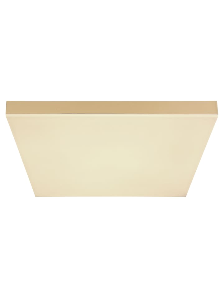 Потолочный светильник, белый металл, матовый латунный пластик, опаловый акрил, регулировка яркости, несколько уровней яркости с помощью настенного переключателя, блокировка цветов, функция памяти, ночник, пульт дистанционного управления, батарейки в комплекте (2 шт. AAA), ДxШxВ: 450x450x65 мм, в комплекте светодиод 24 Вт 230 В, источник света 280-2800 лм, световой поток 160-1600 лм, цветовая температура 2700-6500 К