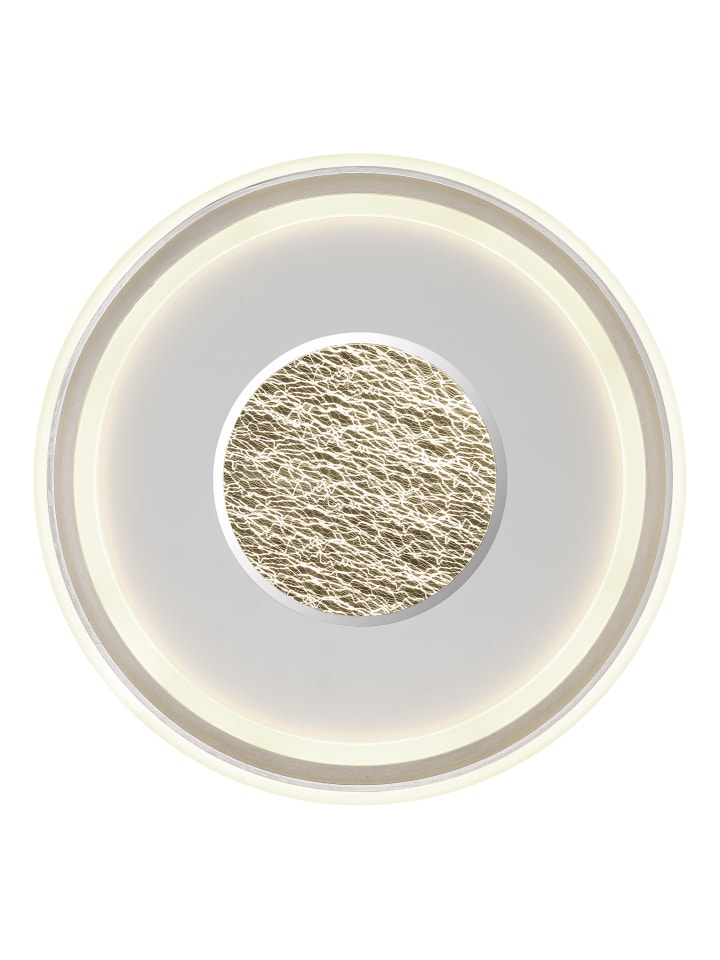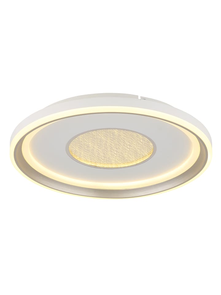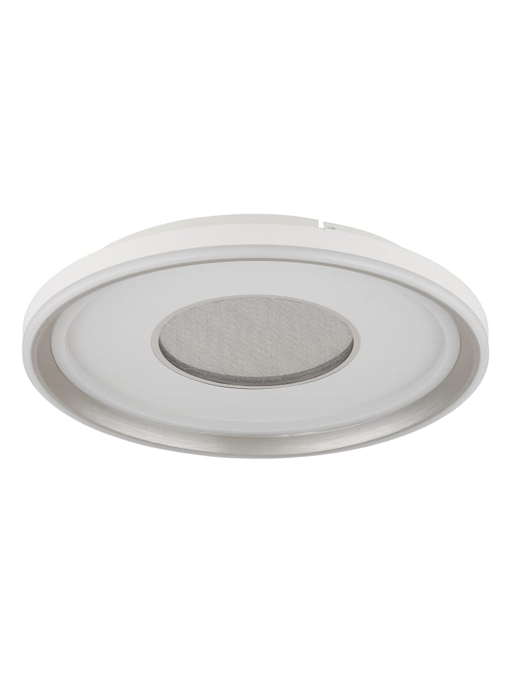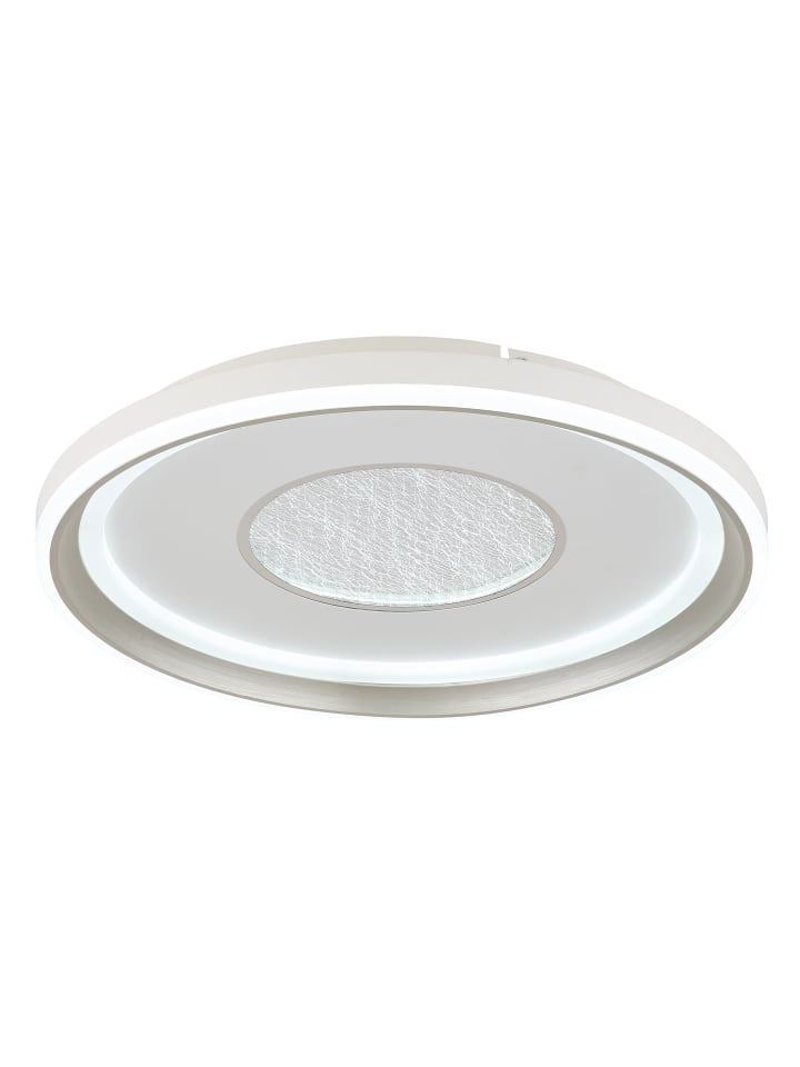 Потолочный светильник, металл, матовый белый; пластик, матовый шампанского цвета; опаловый акрил; зеркальный акрил; регулировка яркости, несколько уровней с помощью настенного переключателя; возможность фиксации цветов; функция памяти; ночник; таймер; пульт дистанционного управления; батарейки в комплекте (2 x AAA); диаметр: 480 мм; высота: 63 мм; в комплект входит светодиод мощностью 48 Вт 230 В, источник света 600-6000 лм, световой поток 260-2640 лм, цветовая температура 2700-6000 К