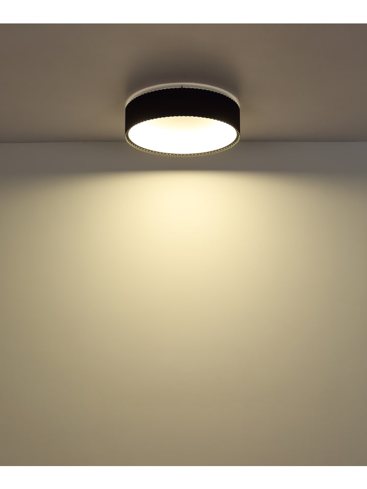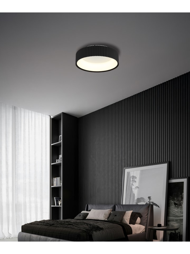 Потолочный светильник, матовый белый металл, матовый черный металл, опаловый акрил, несколько настроек с помощью настенного переключателя, возможность фиксации цветов, функция памяти, диаметр: 460 мм, высота: 130 мм, в комплекте светодиод 45 Вт 230 В, источник света 5625 лм, световой поток 1600 лм, цветовая температура 2700/4000/6000 К