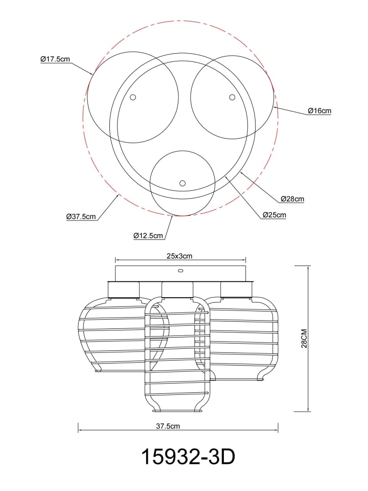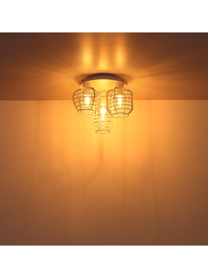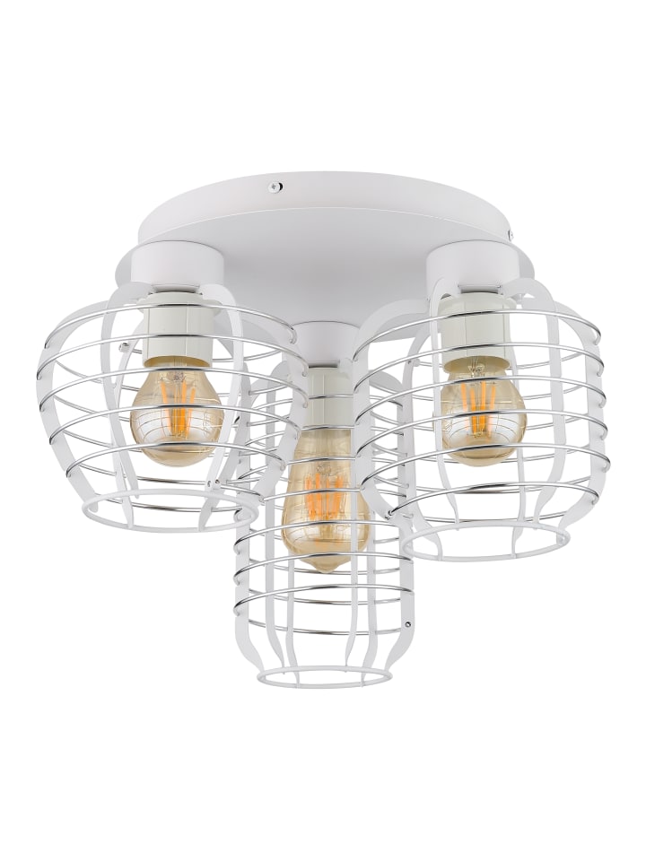 Потолочный светильник, металлический, белый матовый, хромированные алюминиевые стержни, ø: 375 мм, H: 280 мм, диаметр абажура: 1 x 12,5 см, 16 см, 17,5 см каждый