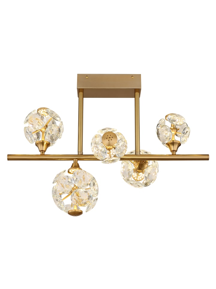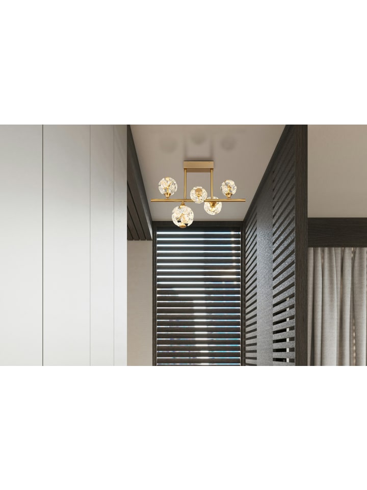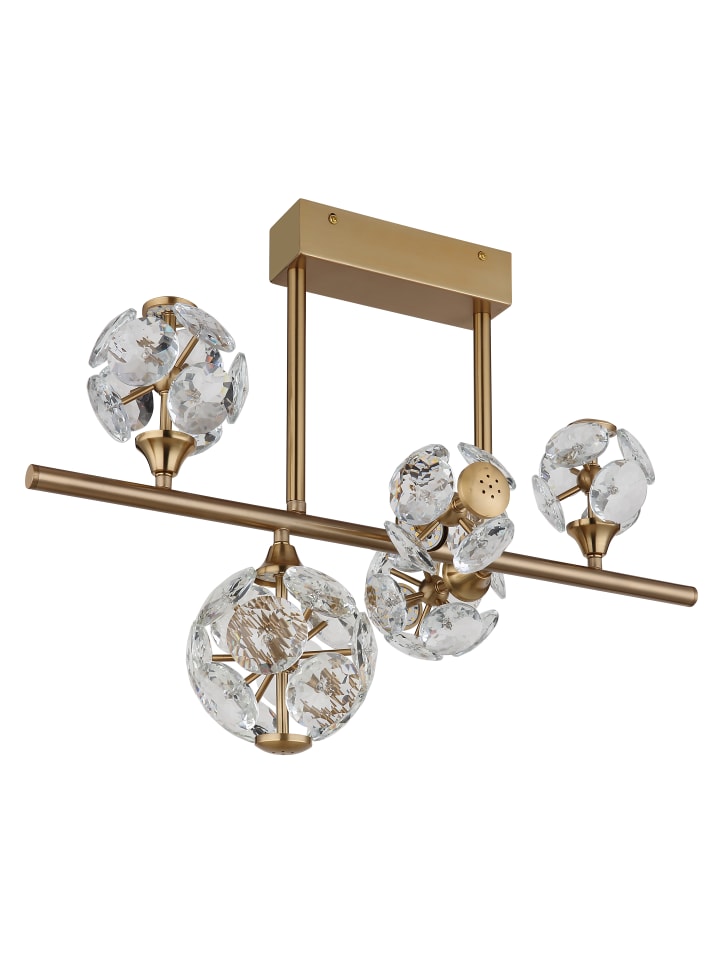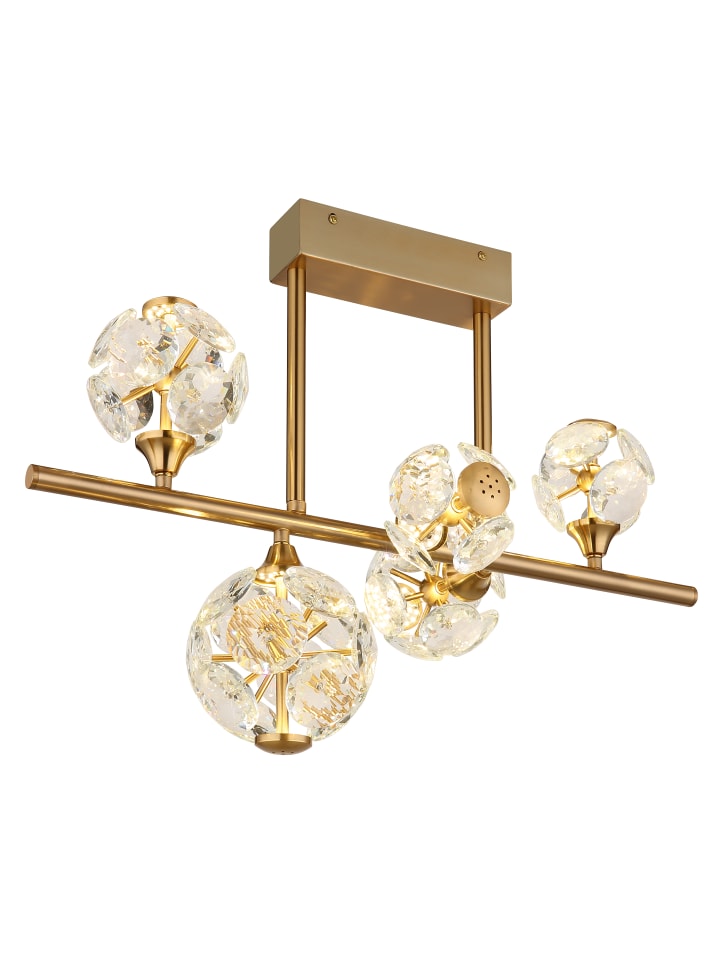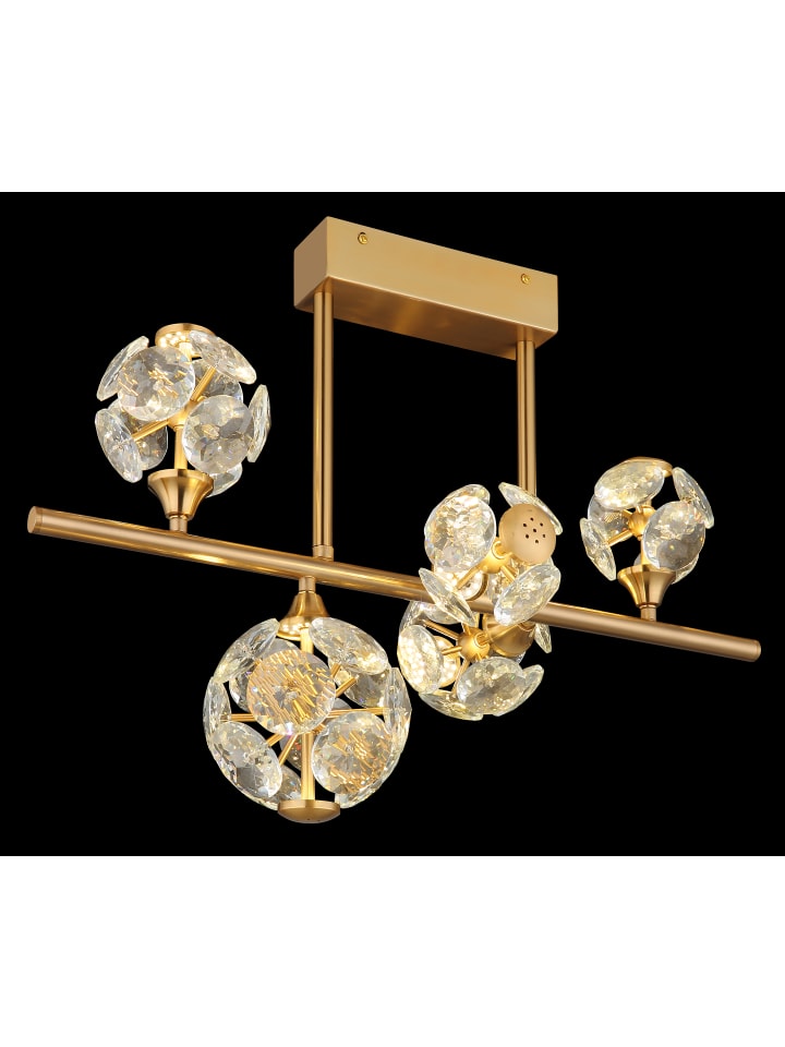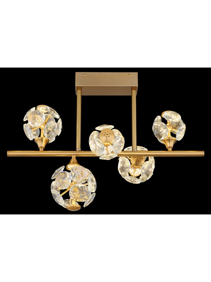 Потолочный светильник, металлический, золотистого цвета, прозрачные кристаллы K9, ДxШxВ: 610x310x450 мм, со светодиодом 30 Вт, 230 В, источник света 4243 лм, световой поток 3866 лм, цветовая температура 3000 К