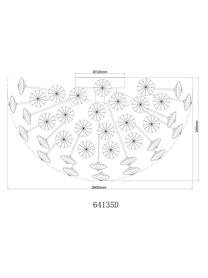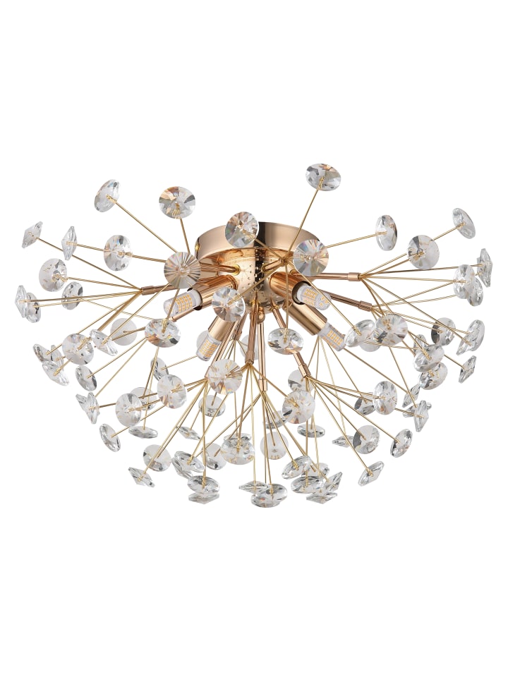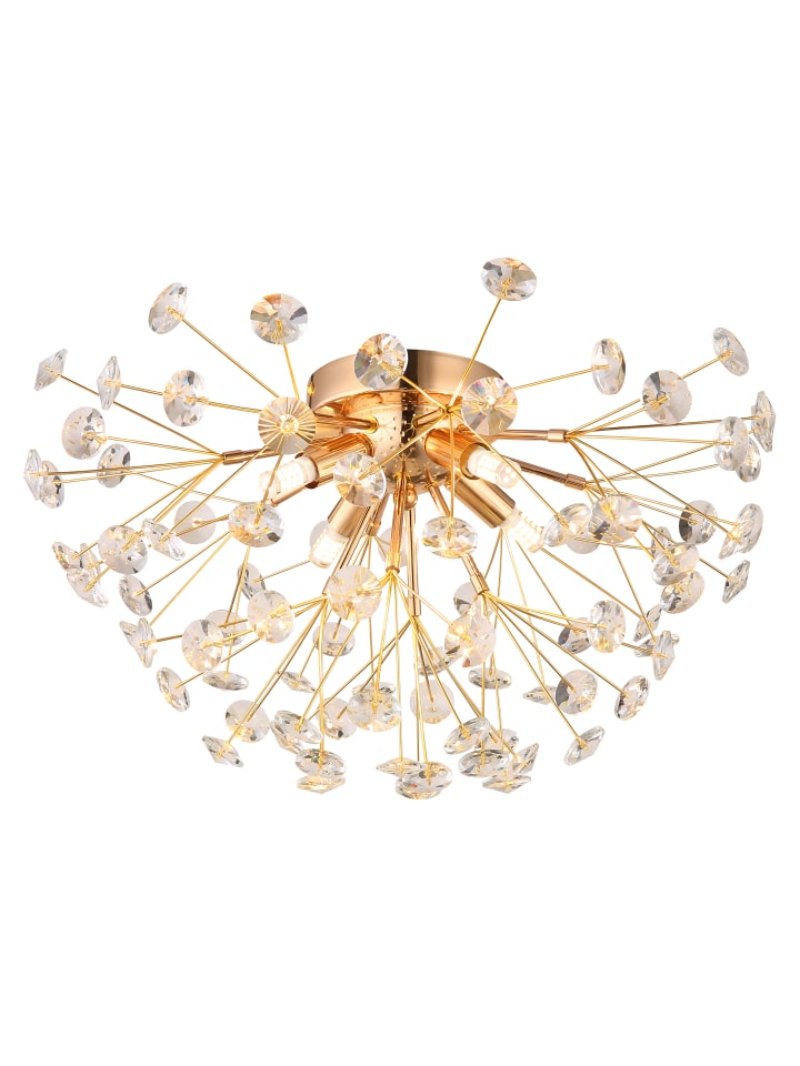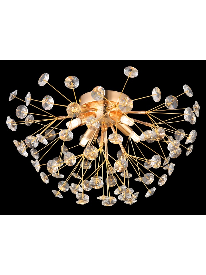 Потолочный светильник, металлический, золотистого цвета, прозрачные кристаллы K9, диаметр: 450 мм, высота: 250 мм, в комплекте 4 светодиода G9 3,5 Вт, 230 В, источник света 350 лм, световой поток 350 лм, цветовая температура 3000 К, в комплекте светодиодные лампы 10676