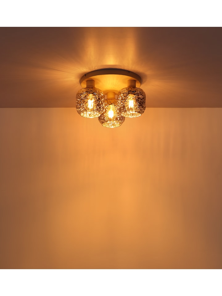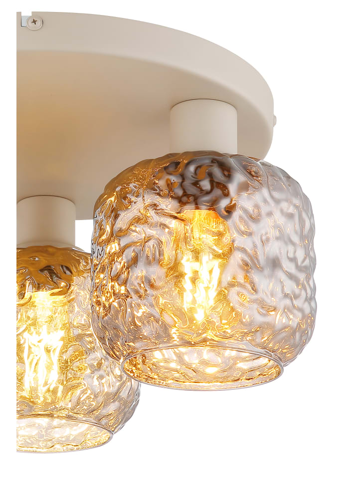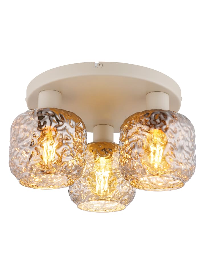 Потолочный светильник, металл, бежевый матовый, дымчатое стекло, хромированное, стекло с вмятинами, ø: 370 мм, H: 190 мм, без 3 лампочек E27 25 Вт 230 В