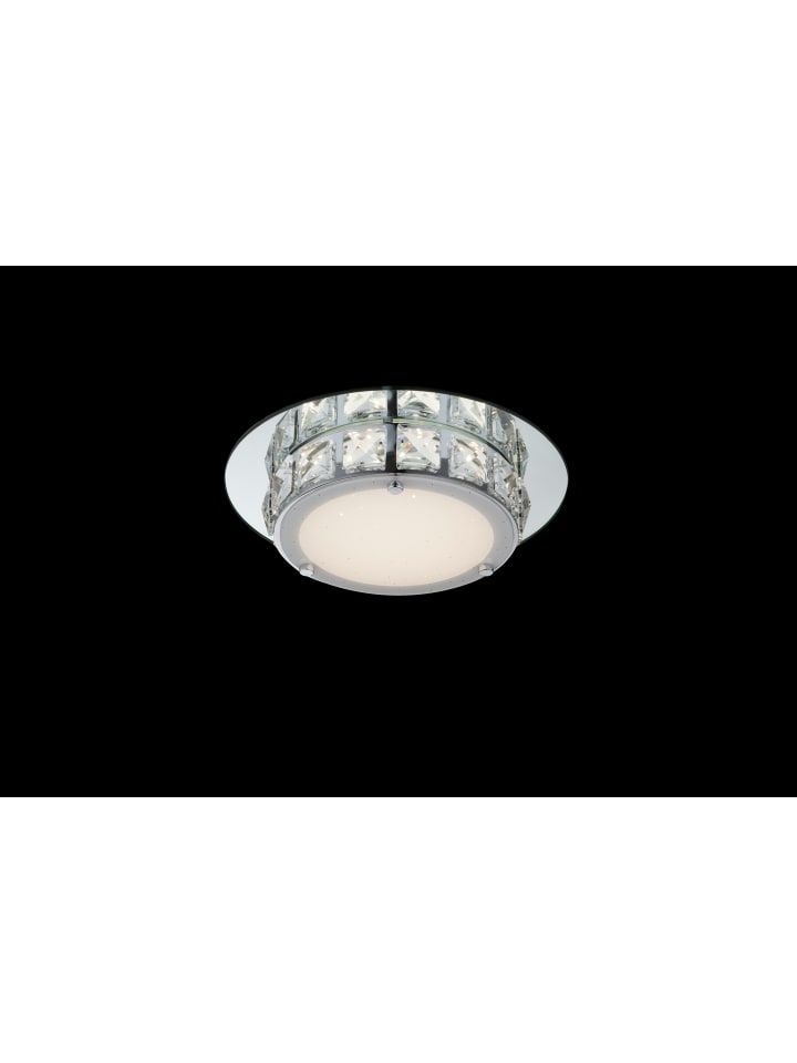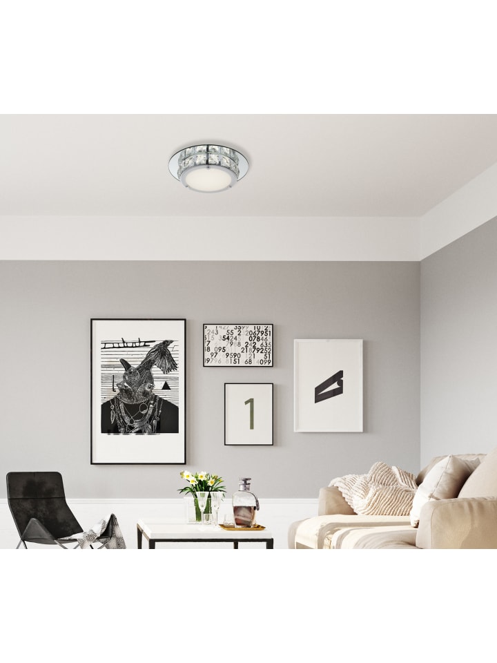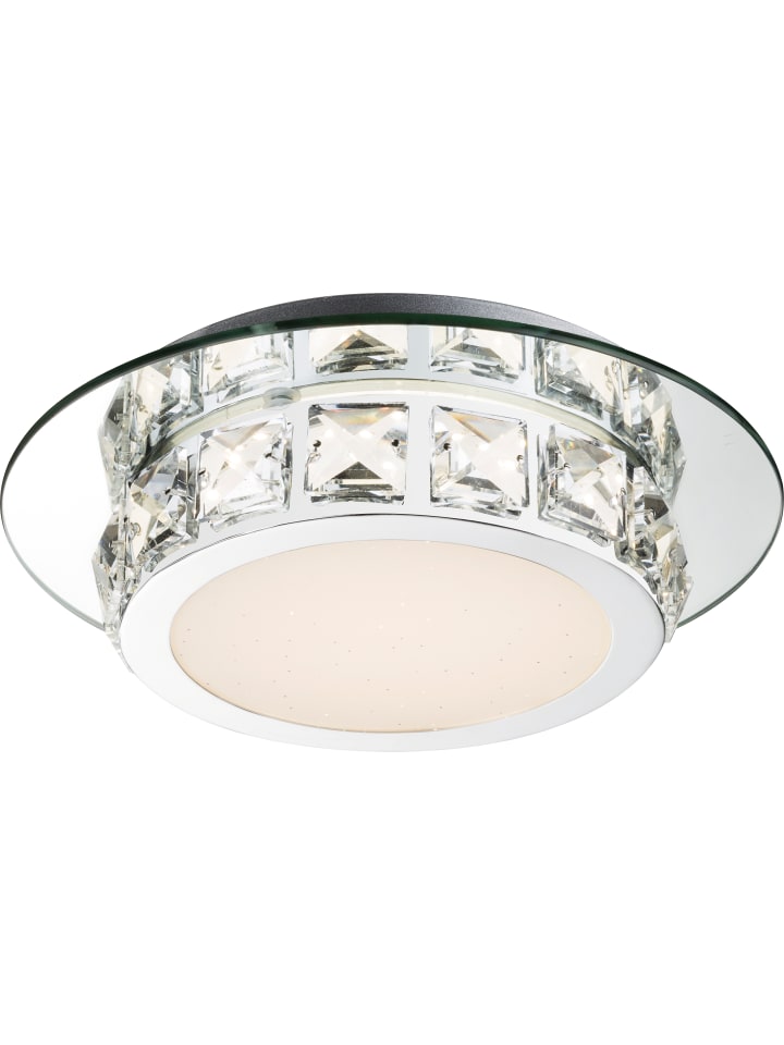 Потолочный светильник, хромированный металл, опаловое стекло, прозрачные кристаллы K5, зеркальная кромка, ø: 250 мм, H: 70 мм, в комплекте светодиод 12 Вт 230 В, источник света 1600 лм, световой поток 980 лм, цветовая температура 4000 К