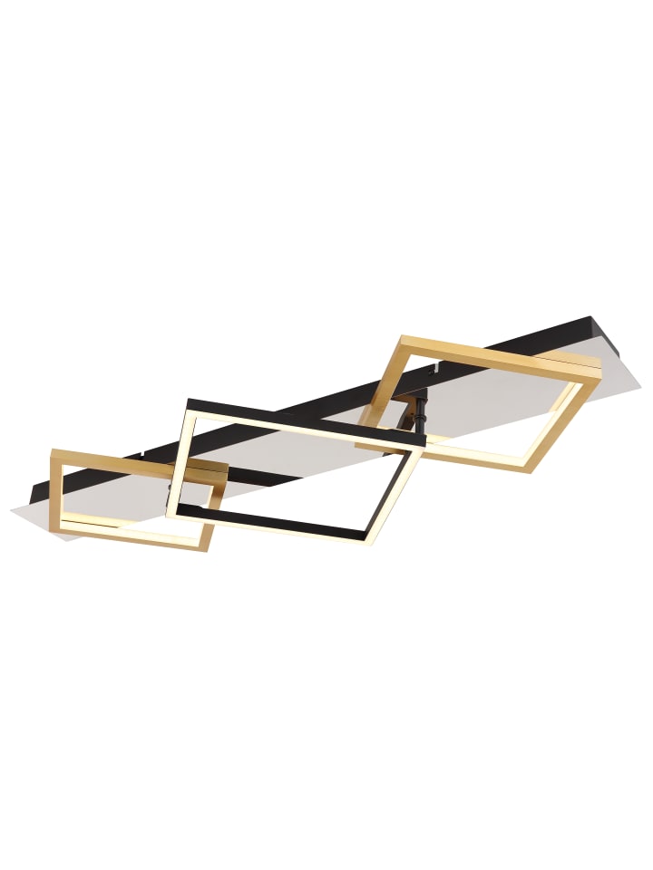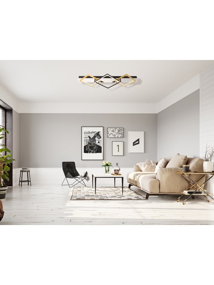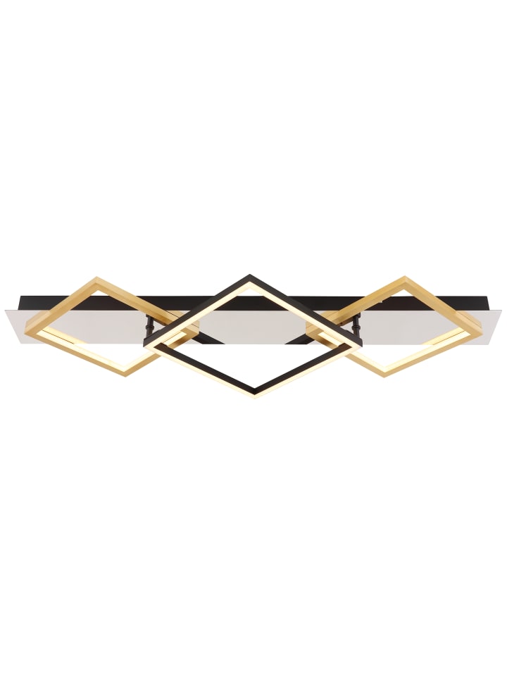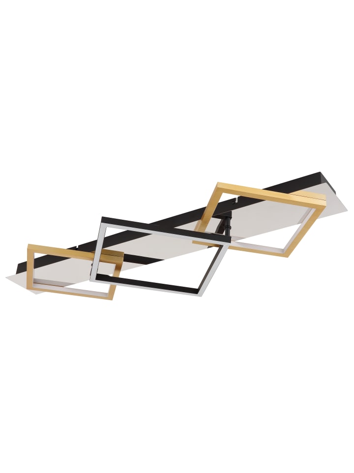Потолочный светильник, хромированный металл, матовый черный металл, шлифованный алюминий цвета золота, опаловый пластик, ДxШxВ: 780x355x70 мм, в комплекте светодиод 32 Вт 230 В, источник света 3400 лм, световой поток 1300 лм, цветовая температура 3000 К