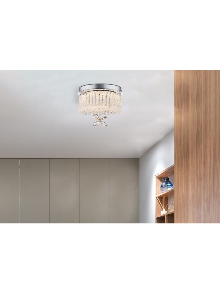 Потолочный светильник, хромированный металл, стеклянные стержни, кристаллы K9, крупный цветочный кристалл в центре, диаметр: 280 мм, высота: 220 мм, в комплекте светодиод 12 Вт, 230 В, источник света 1280 лм, световой поток 800 лм, цветовая температура 4000 К