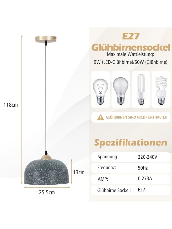 Благодаря цоколю E27 подойдут различные лампочки E27 (не входят в комплект).