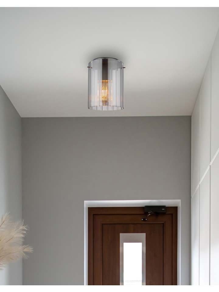 Потолочный светильник, металл, темно-серый, дымчатое стекло, рифленое стекло, ø: 180 мм, H: 230 мм, без 1 цоколя E27 40 Вт 230 В