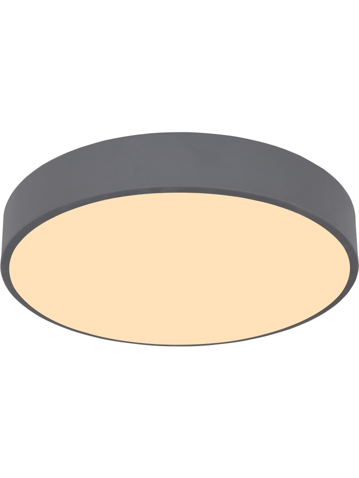 Потолочный светильник, графитовый металл, опаловый пластик, с регулировкой яркости, настенным выключателем с несколькими ступенями регулировки, подсветкой, функцией памяти, ночником, пультом дистанционного управления, 3 регулируемых уровня освещения, ø: 400 мм, H: 105 мм, в комплекте светодиод 24 Вт 230 В, источник света 220-2550 лм, световой поток 120-1400 лм, цветовая температура 3000 К, без 1 светодиода E14 10 Вт 230 В, источник света 85-1050 лм, световой поток 60-700 лм, цветовая температура 3000 К