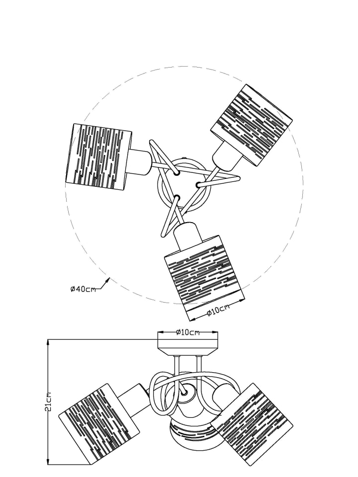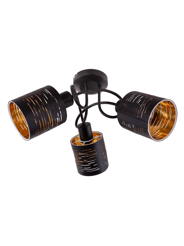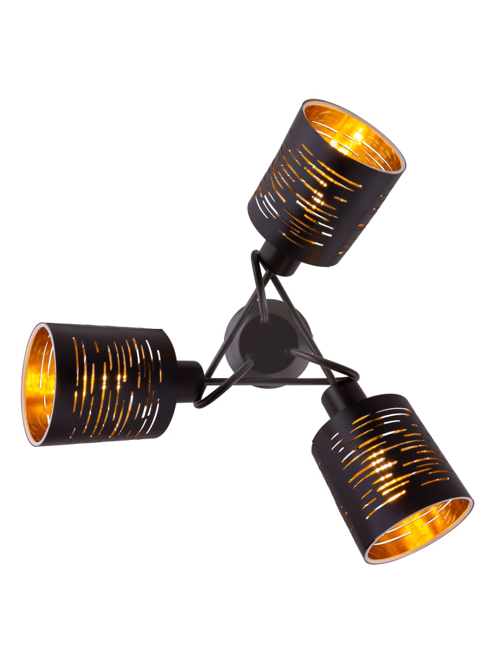 Потолочный светильник, черный металл, черный пластик, золотистый цвет, ø: 400 мм, H: 210 мм, без 3 ламп E14 15 Вт 230 В