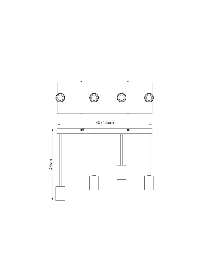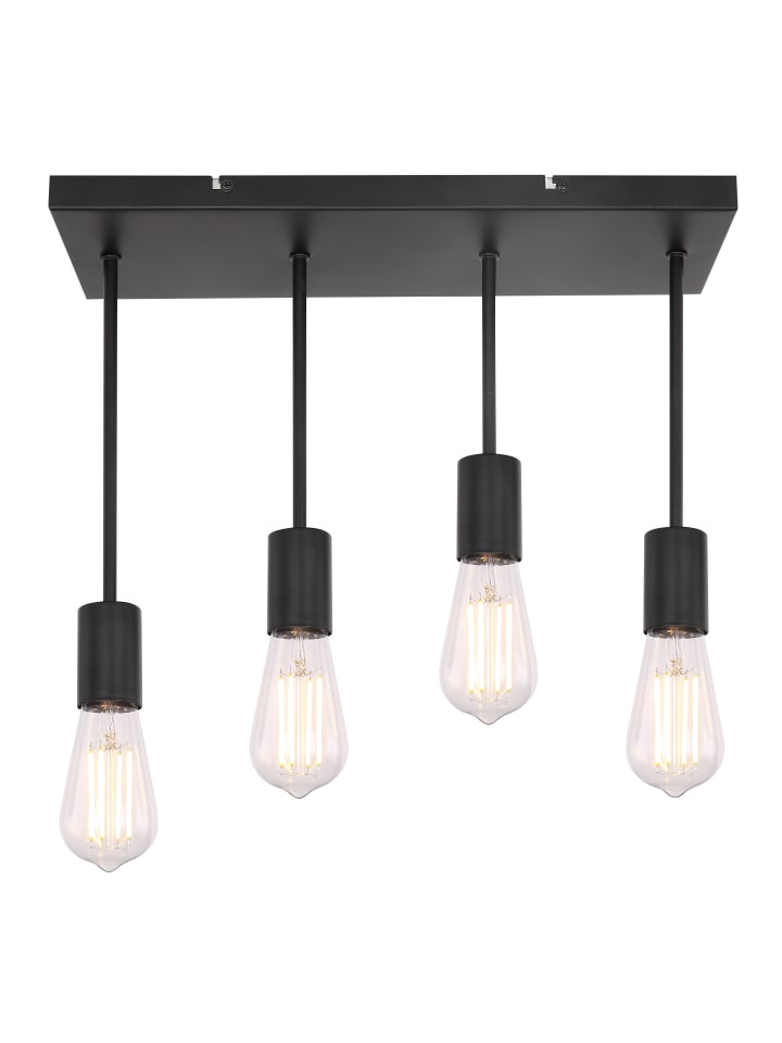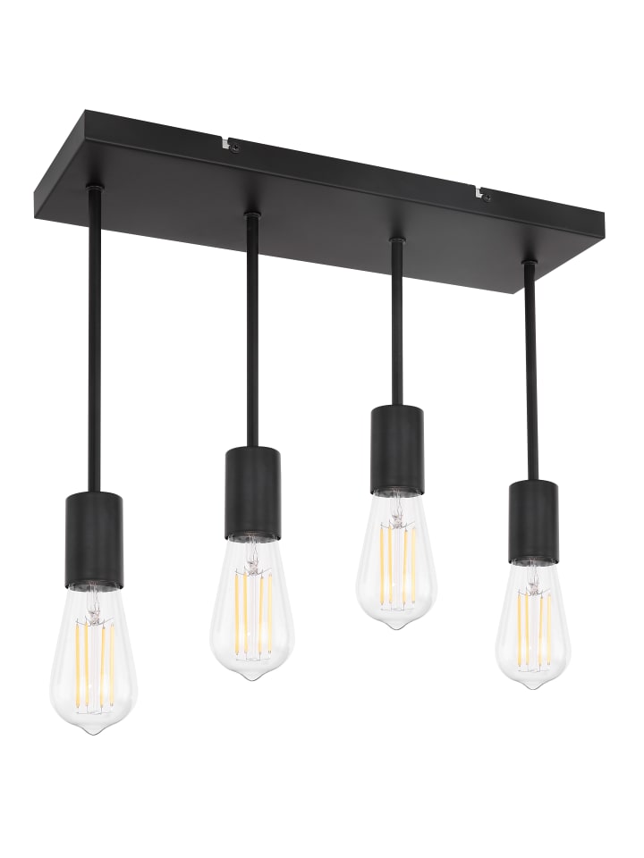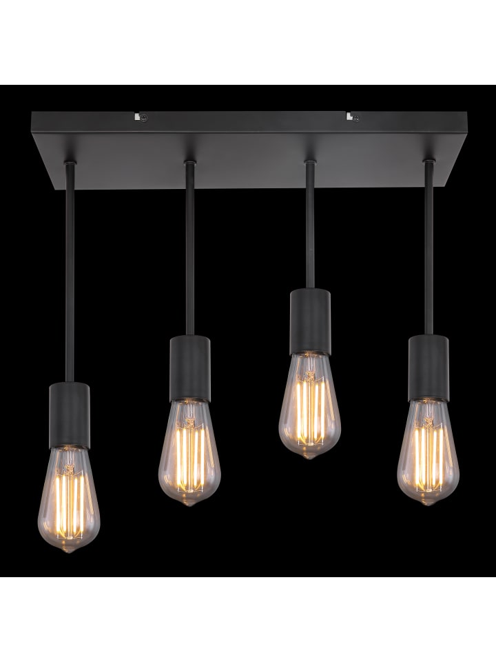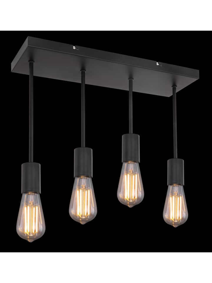Потолочный светильник, металлический, черный, без абажура, ДxШxВ: 450x150x340 мм, без 4 ламп E27 60 Вт 230 В