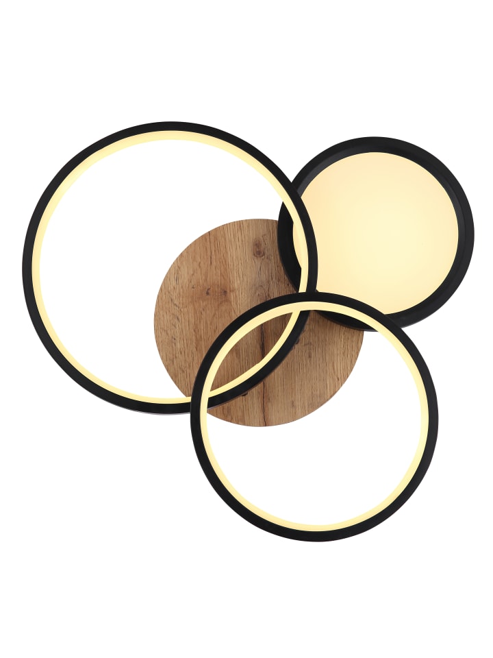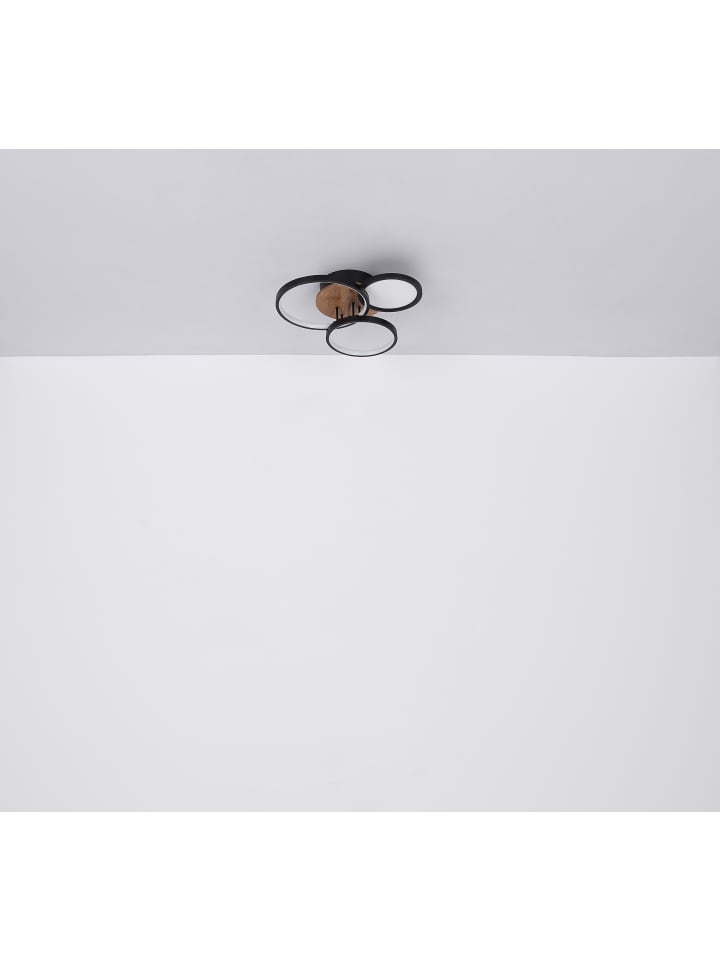 Потолочный светильник, матовый черный металл, МДФ с имитацией темного дерева, матовый черный металл, опаловый пластик, ДxШxВ: 400x380x105 мм, в комплекте светодиод 30 Вт 230 В, источник света 3900 лм, световой поток 1500 лм, цветовая температура 3000 К