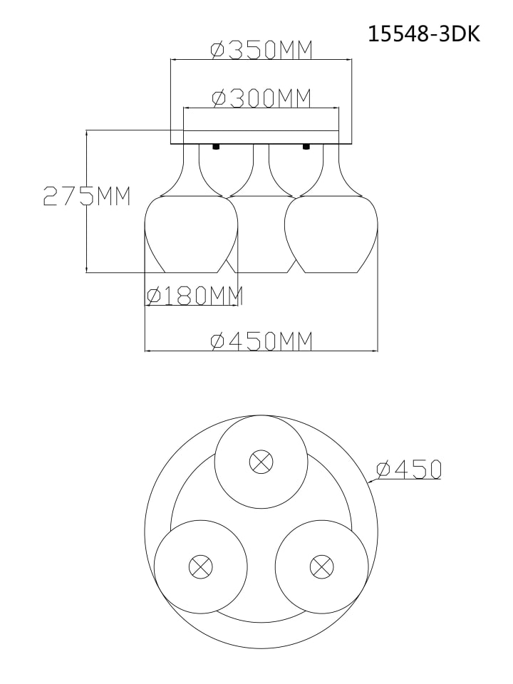 Потолочный светильник, металл, черный хром, прозрачное стекло, прозрачные акриловые кристаллы, ø: 450 мм, H: 275 мм, без 3 ламп E27 40 Вт 230 В