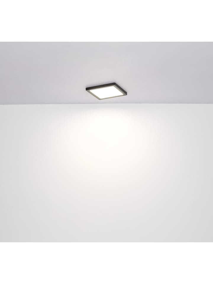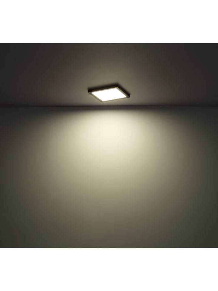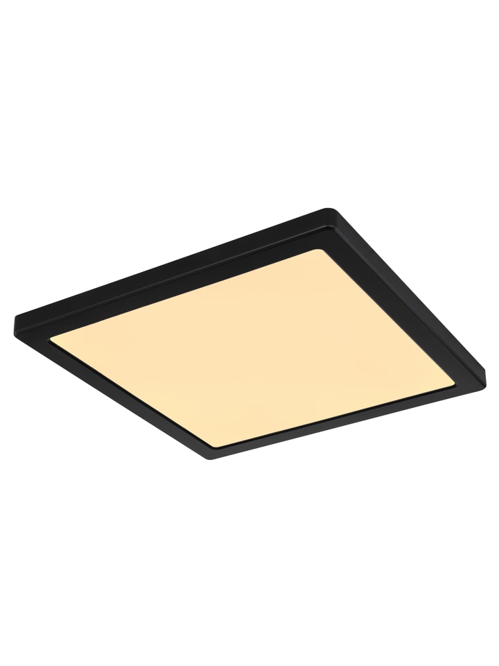 Потолочный светильник, черный пластик, опаловый пластик, ползунковый переключатель, выбор цвета, ДxШxВ: 291x291x17 мм, в комплекте светодиод 24 Вт, 230 В, источник света 2500 лм, световой поток 2000 лм, цветовая температура 3000/4000/6500 К