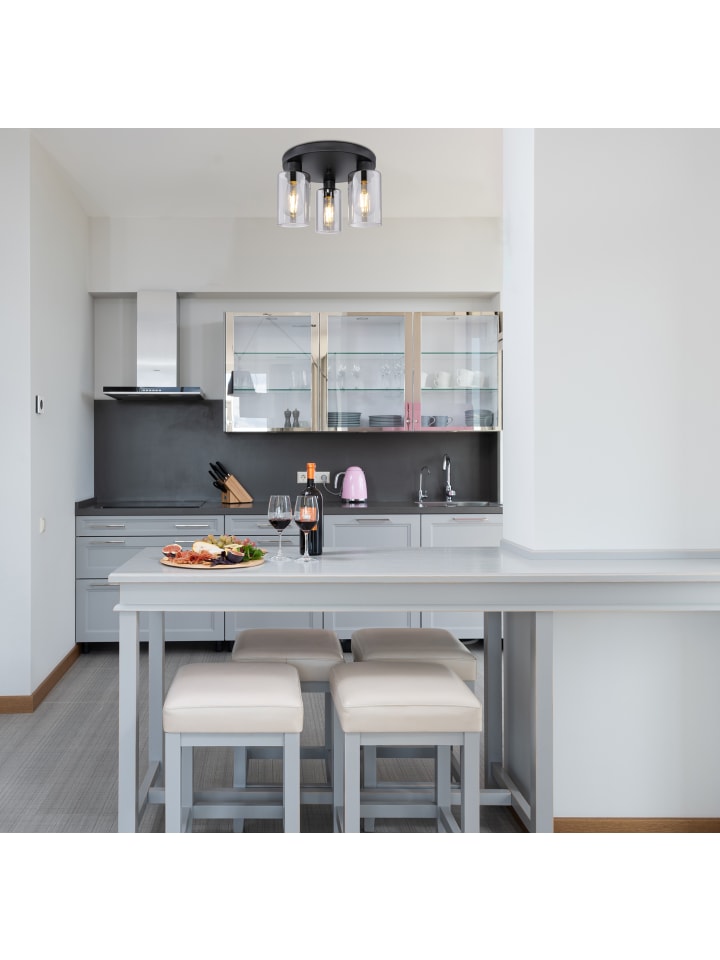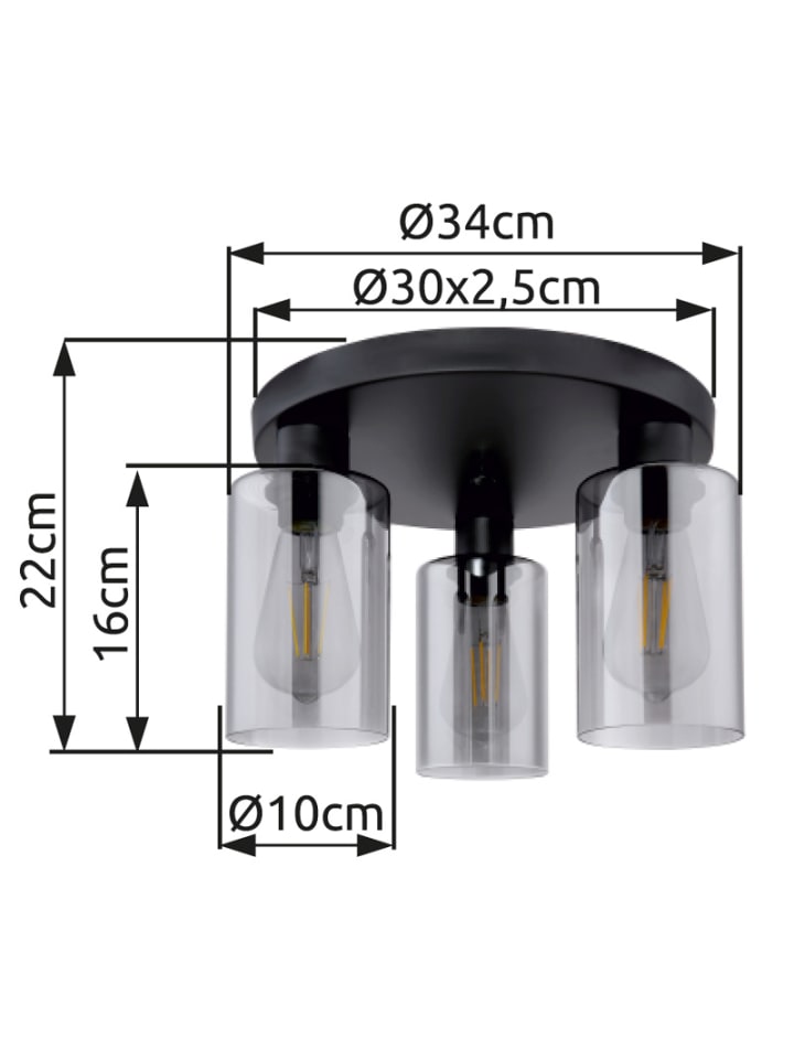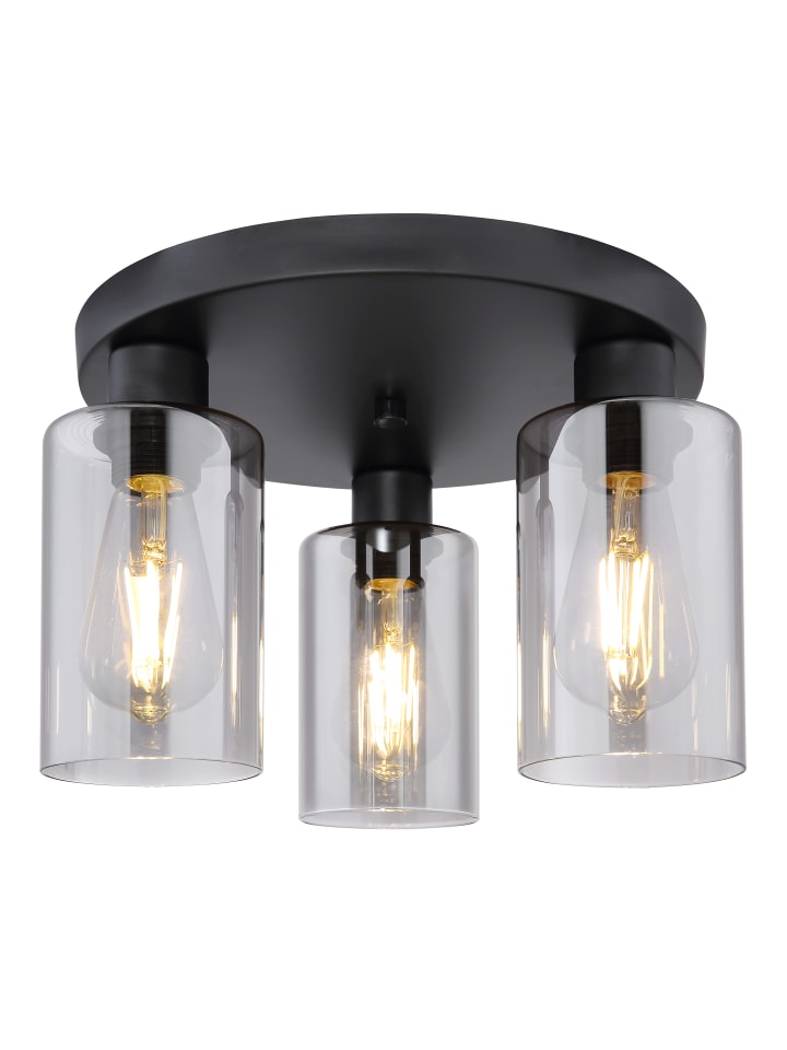 Потолочный светильник, металл, матово-черный, стекло, дымчатое, ø: 340 мм, H: 220 мм, без 3 ламп E27 60 Вт 230 В