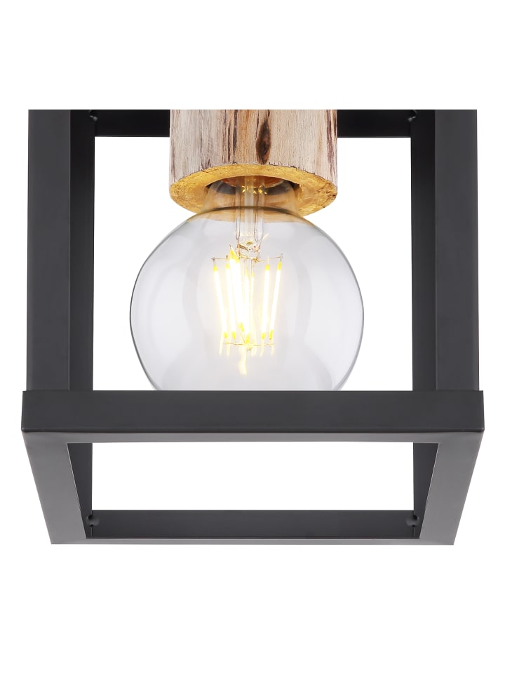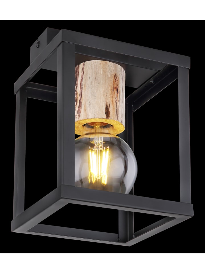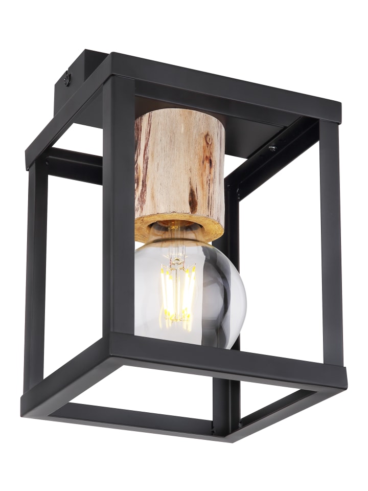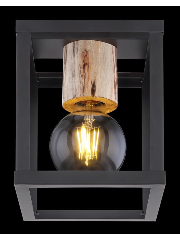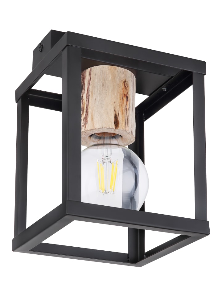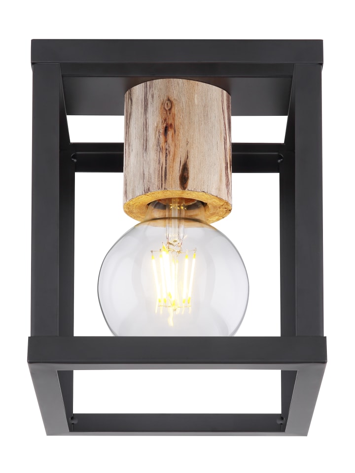 Потолочный светильник, матовый черный металл, натуральное дерево, матовый черный металл, декоративная деревянная заглушка над розеткой, ДxШxВ: 170x170x225 мм, без 1 цоколя E27 60 Вт 230 В