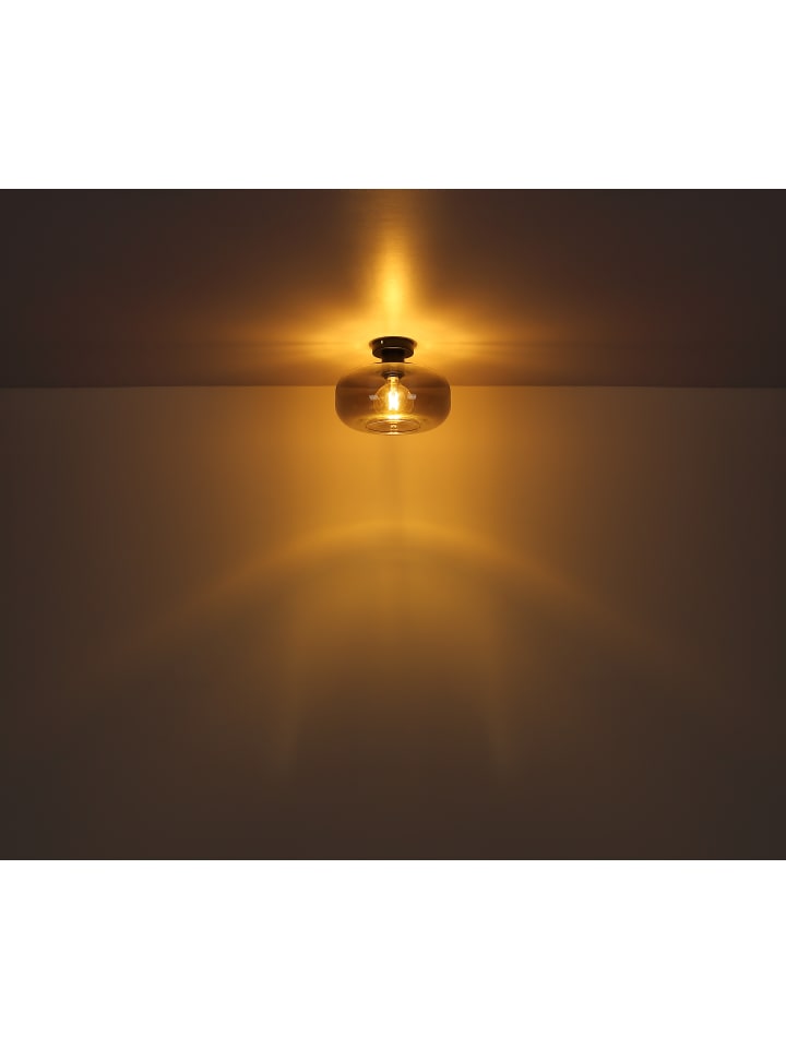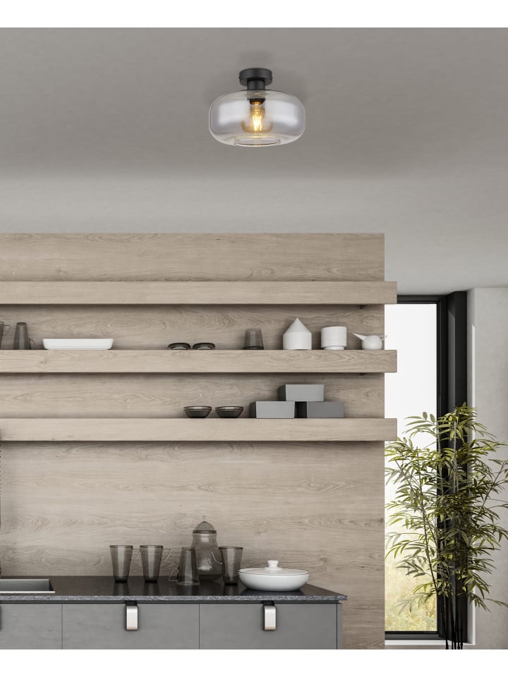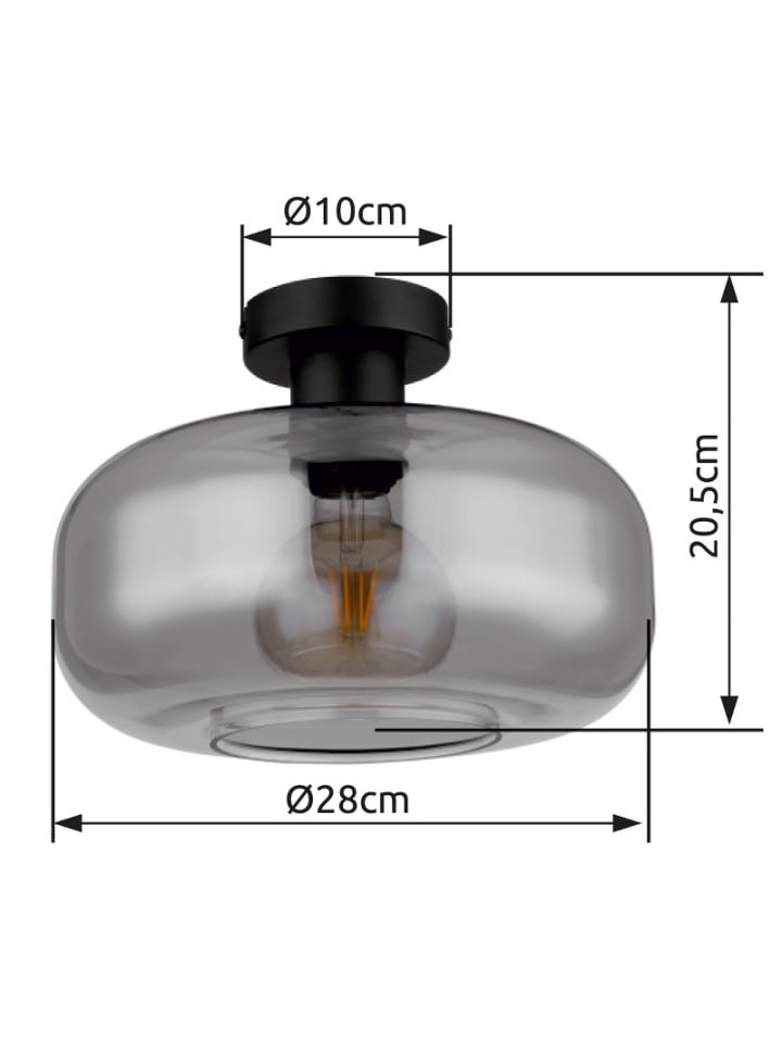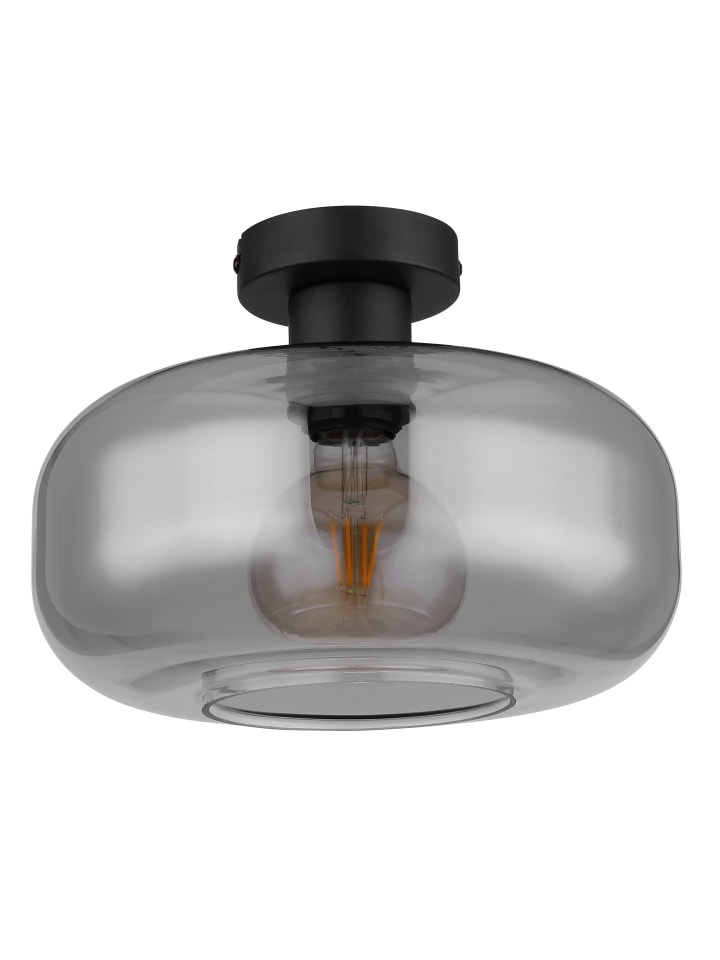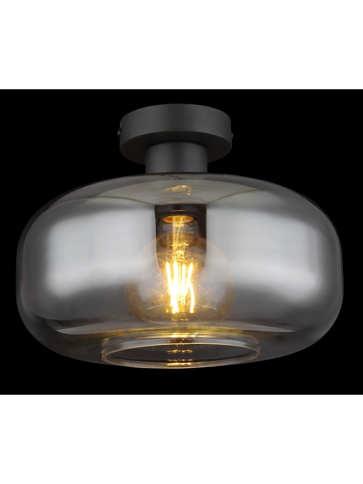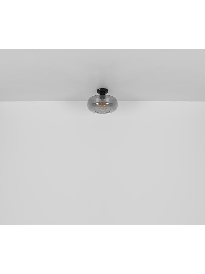 Потолочный светильник, металл, матово-черный, стекло, дымчатое, ø: 280 мм, H: 205 мм, без 1 цоколя E27 40 Вт 230 В