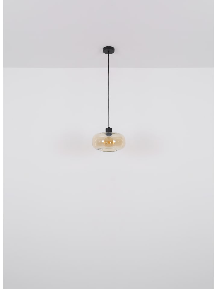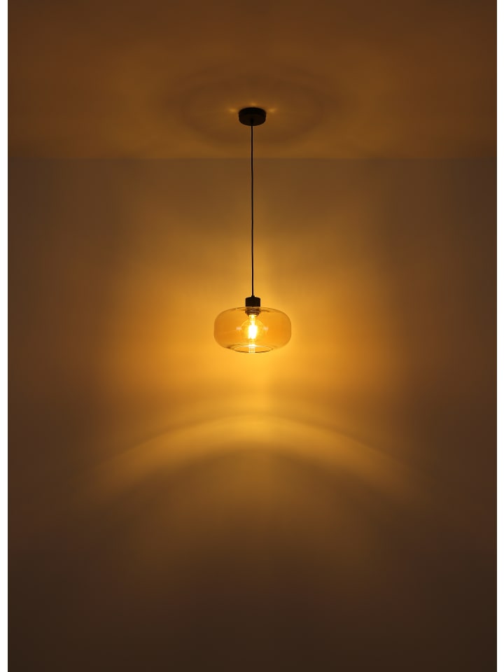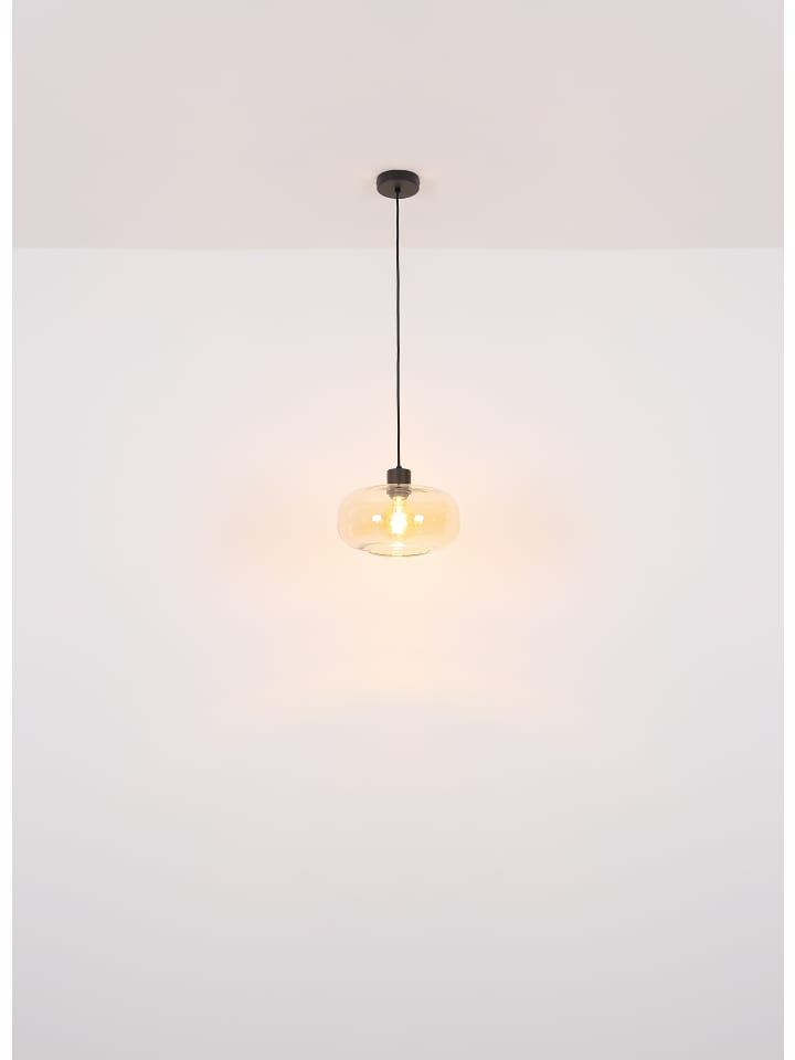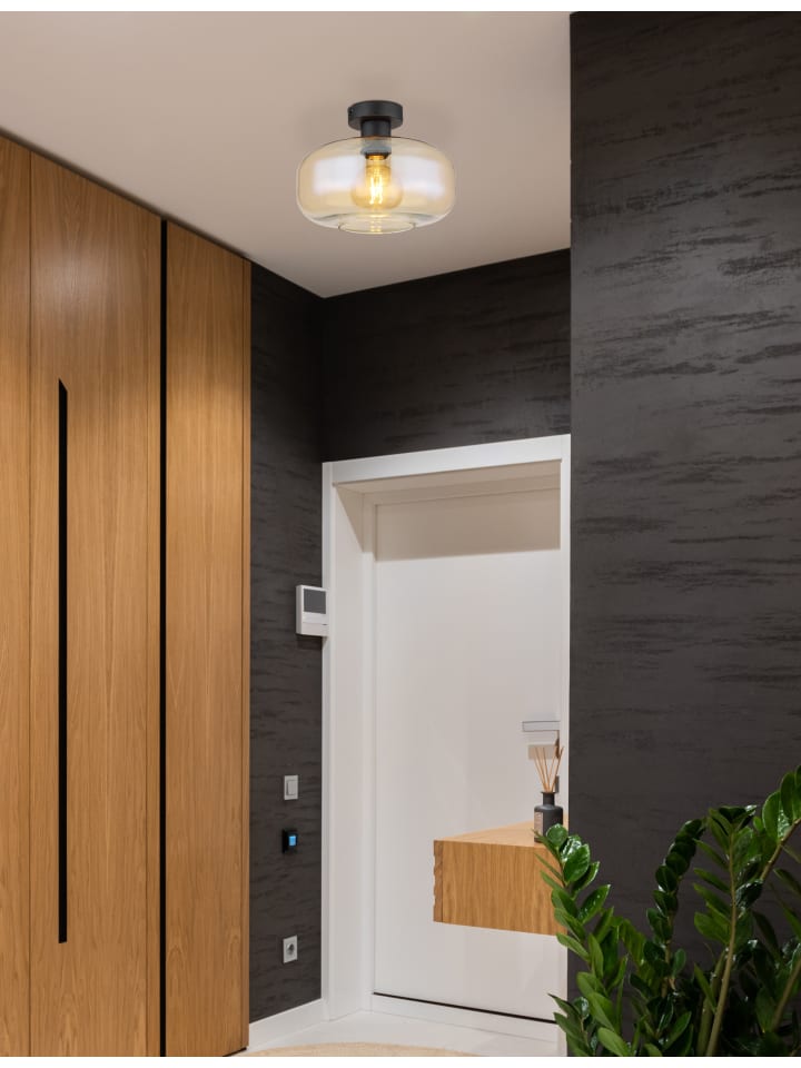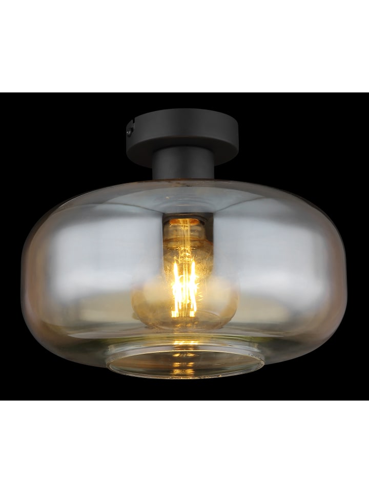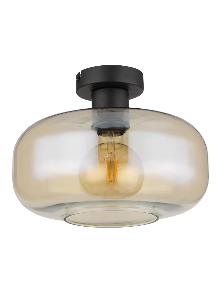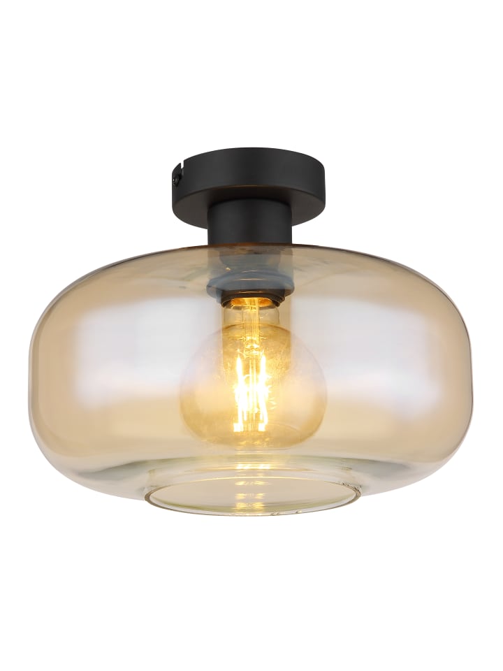 Потолочный светильник, металл, матовый черный, стекло, янтарный, ø: 280 мм, H: 205 мм, без 1 лампы E27 40 Вт 230 В