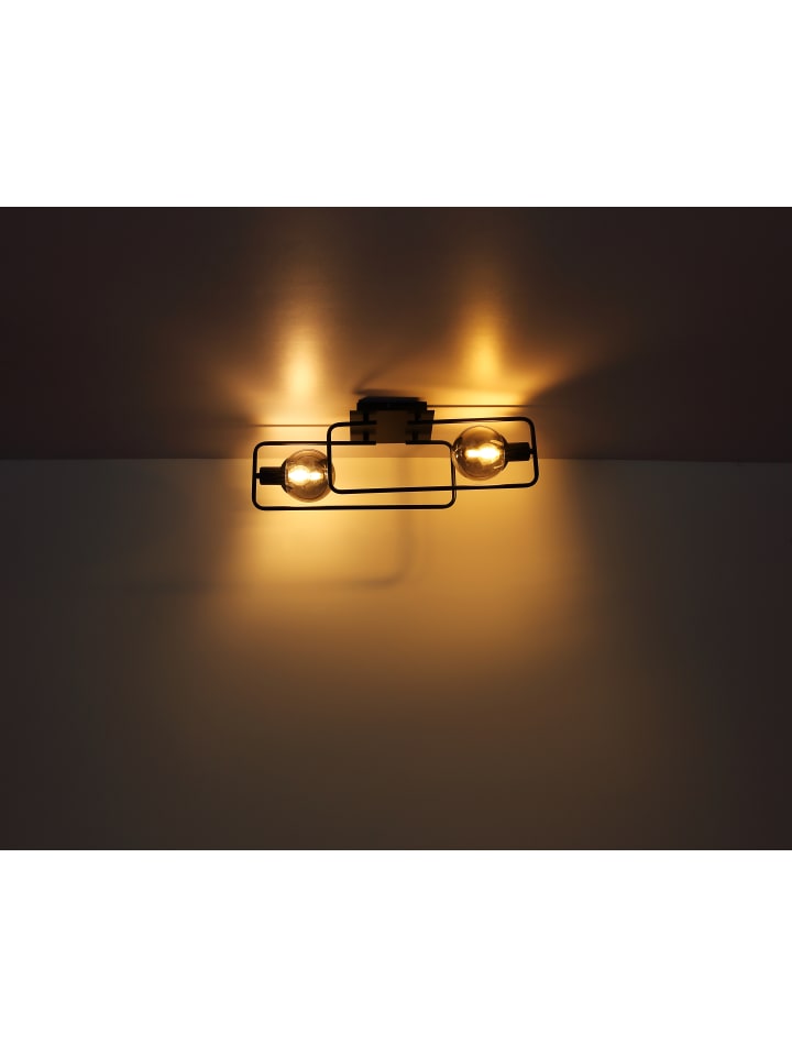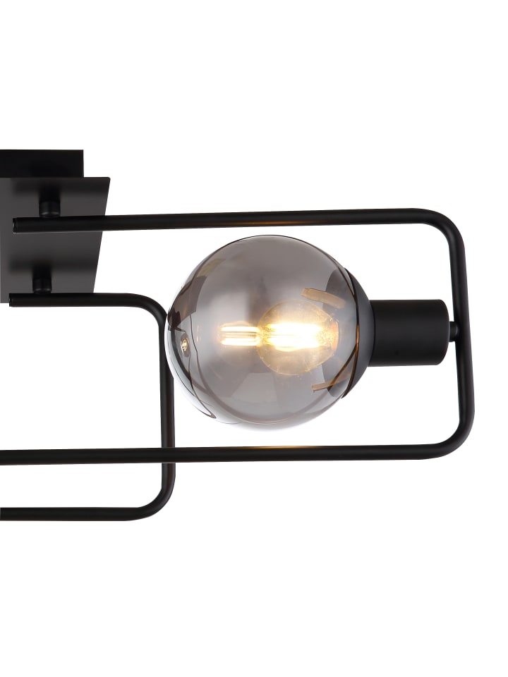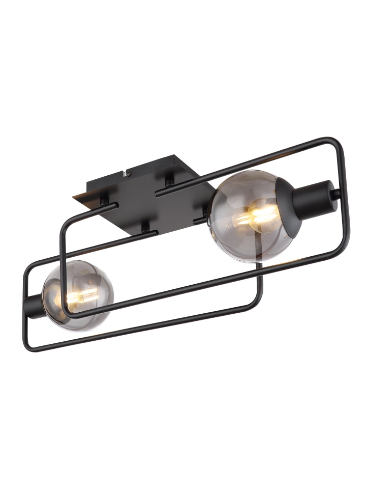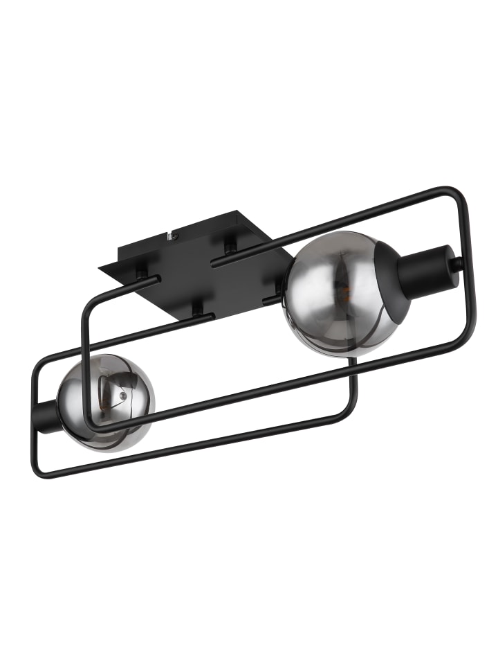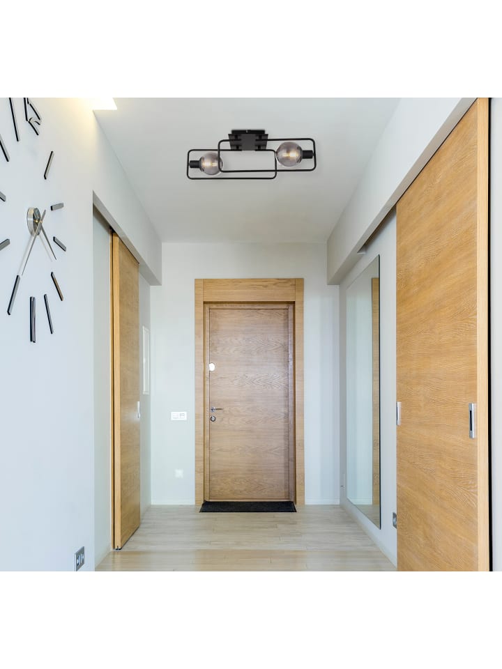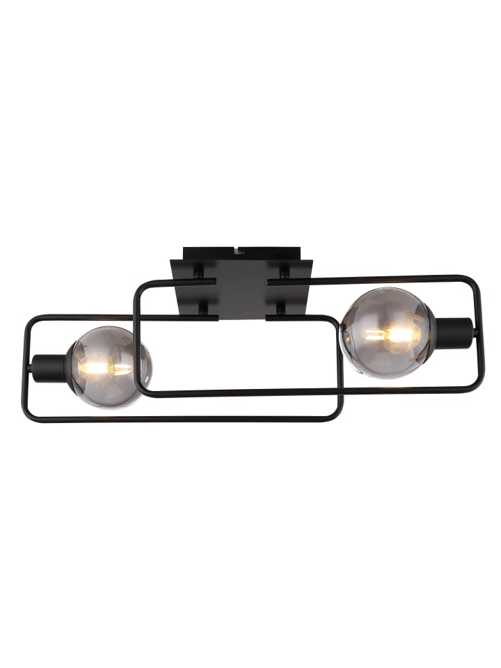 Потолочный светильник, металл, матово-черный, стекло, дымчатое, ДxШxВ: 610x230x190 мм, без 2 ламп E14 40 Вт 230 В