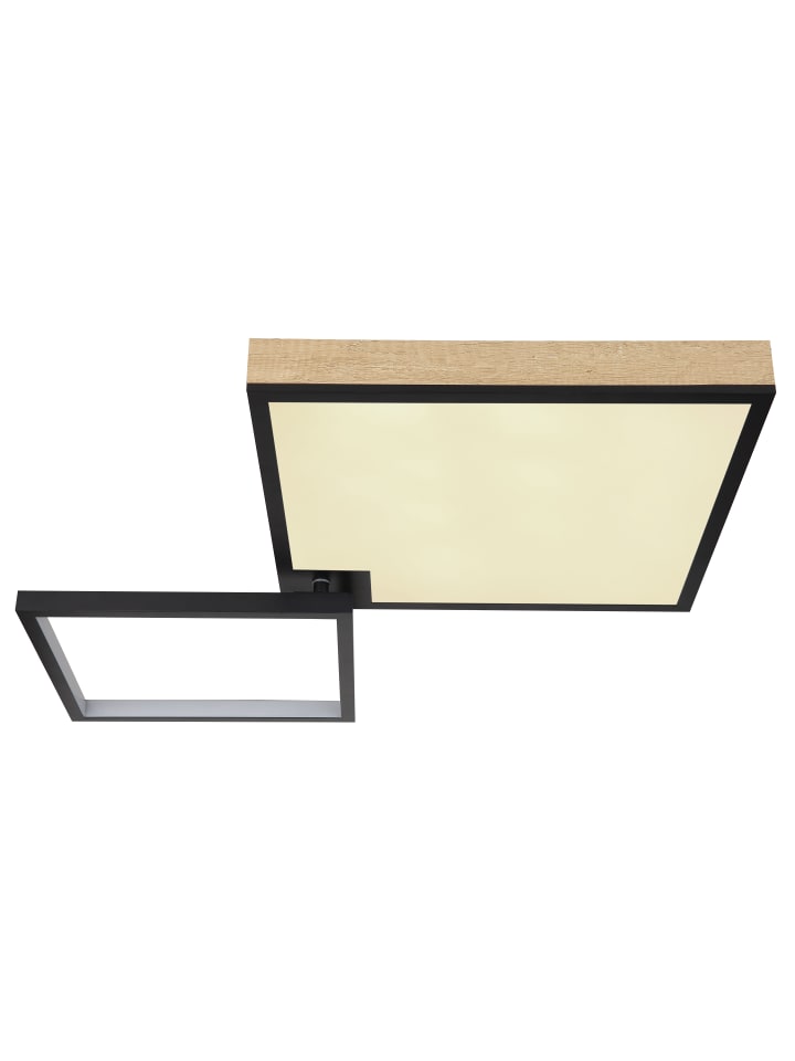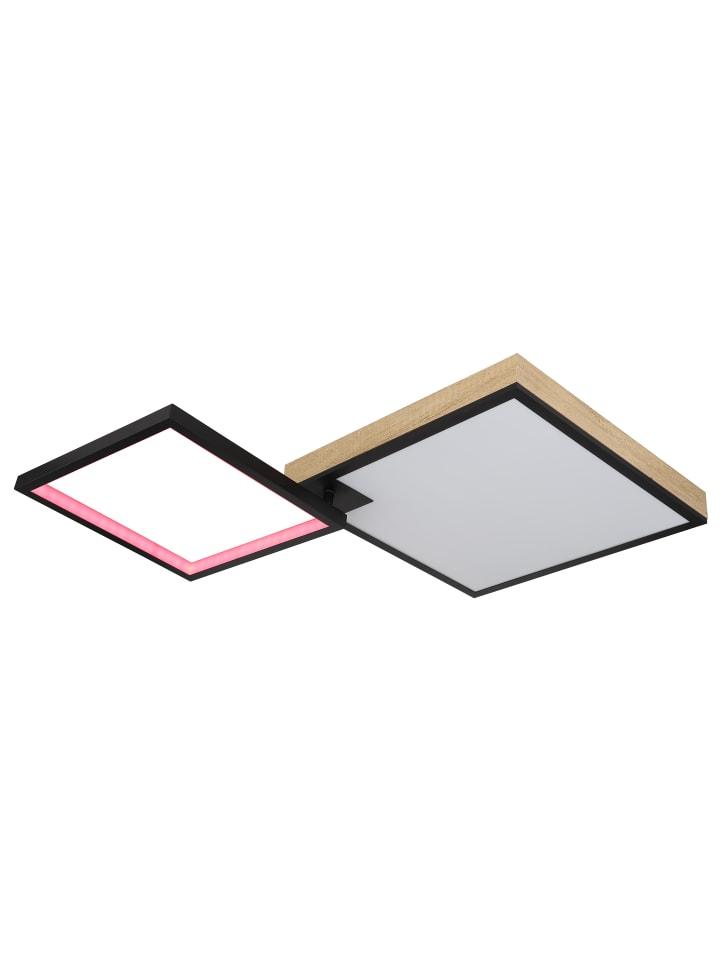 Потолочный светильник, матовый черный металл, МДФ под темное дерево, опаловый акрил, регулировка яркости, несколько уровней яркости с помощью настенного переключателя, блокировка цветов, RGB-переключатель, блокировка цветов RGB, функция памяти, поворотный/вращающийся, пульт дистанционного управления, батарейки в комплекте (2 x AAA), Д x Ш x В: 855 x 550 x 100 мм, маленький квадрат: 30 x 30 см, большой квадрат: 39 x 39 см, в комплекте светодиод 40 Вт 230 В, источник света 430-4300 лм, световой поток 200-2000 лм, цветовая температура 2700-6500 К, в комплекте светодиод RGB 5 Вт 230 В