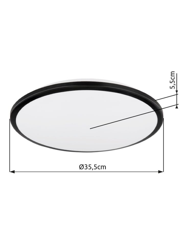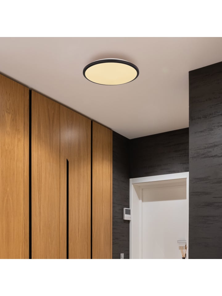 Потолочный светильник, черный матовый пластик, опаловый пластик, диаметр: 350 мм, высота: 55 мм, в комплекте светодиод 18 Вт 230 В, источник света 2050 лм, световой поток 950 лм, цветовая температура 3000 К