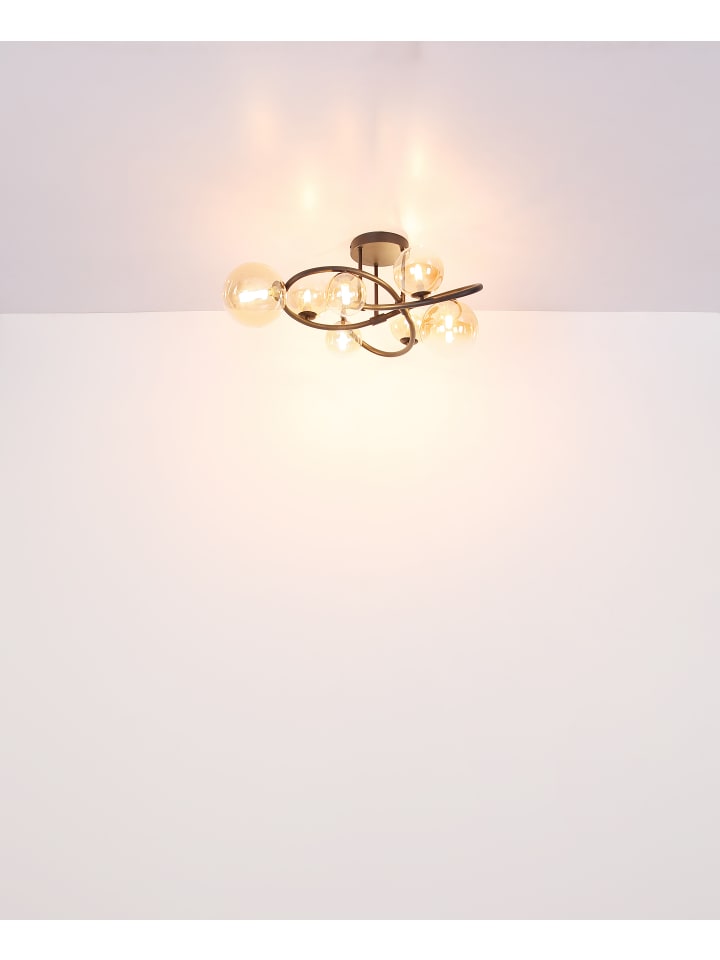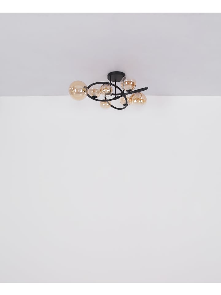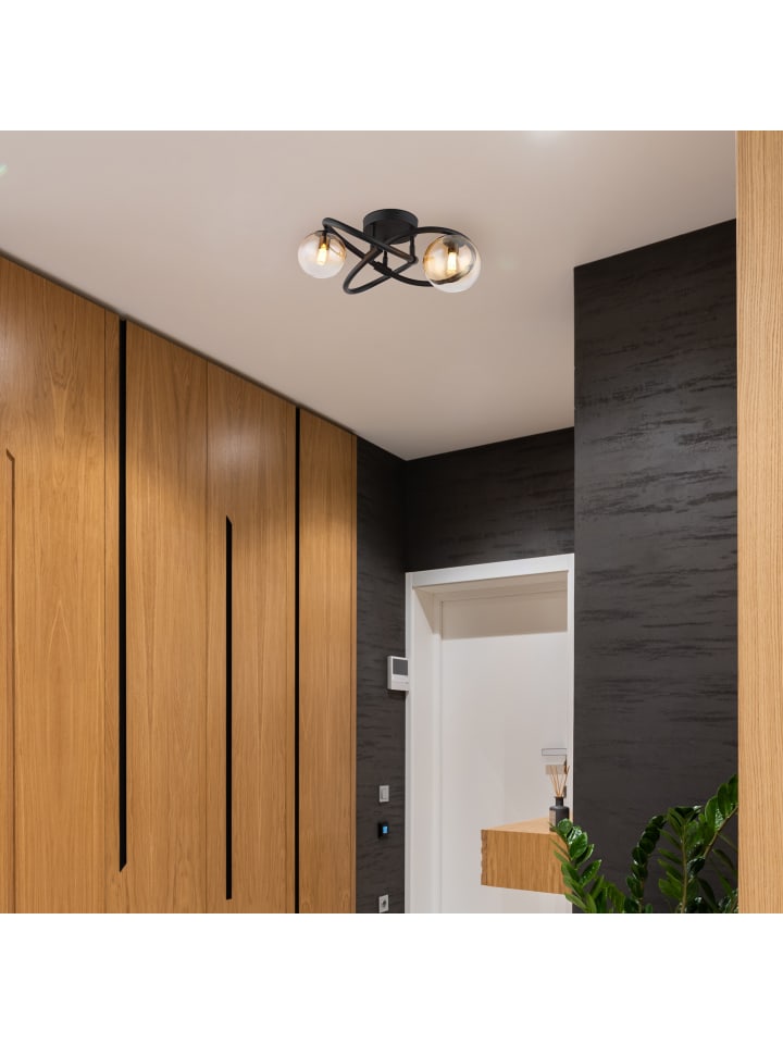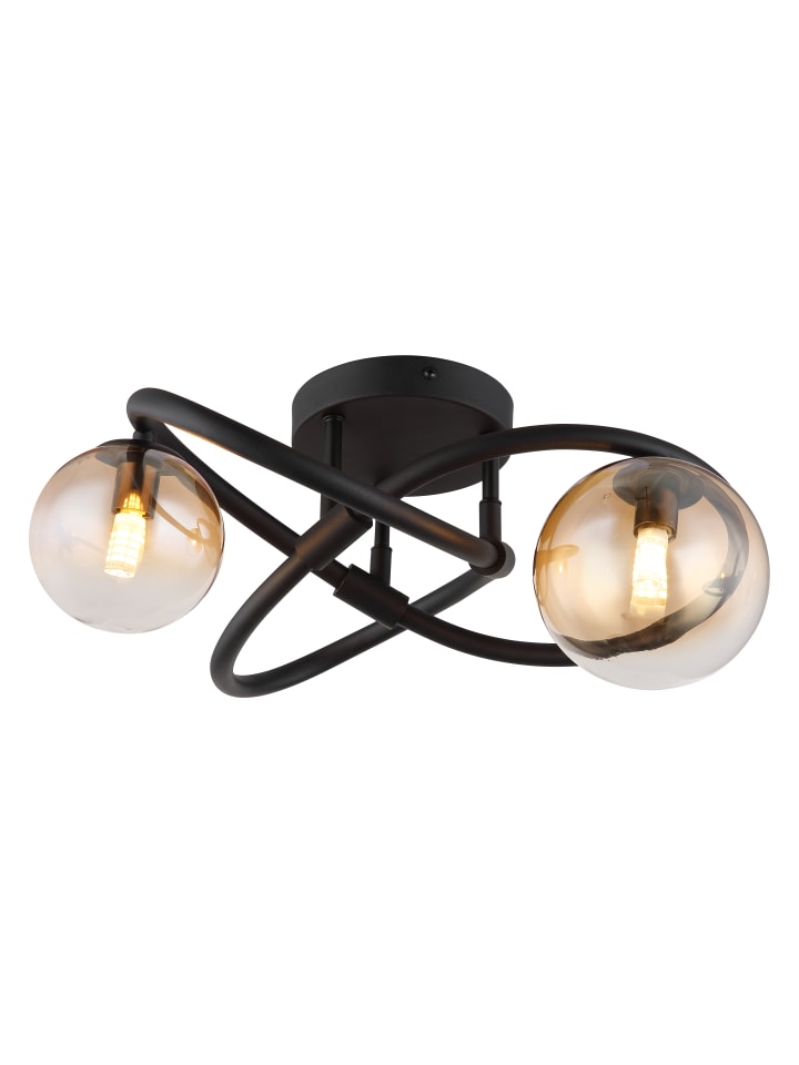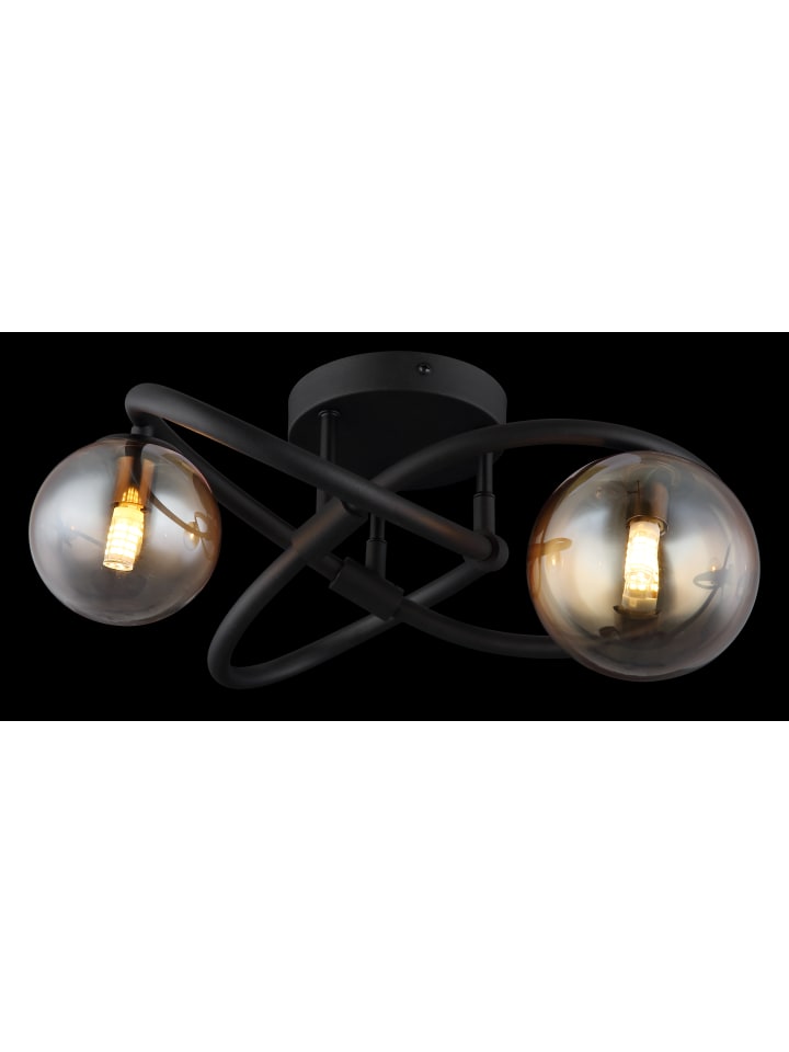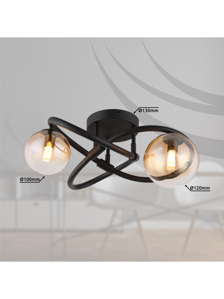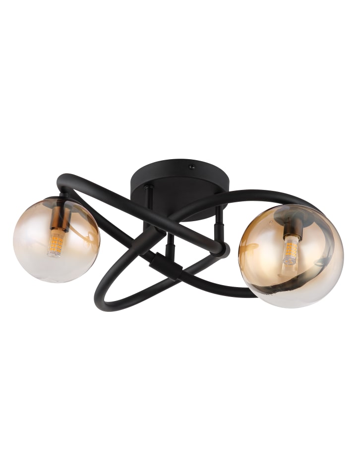 Потолочный светильник, матовый черный металл, янтарное стекло с прозрачным градиентом, ø: 410 мм, H: 200 мм, диаметр стекла: 1 x 10 см и 12 см каждый, в комплекте 2 светодиода G9 3,5 Вт 230 В, источник света 350 лм, световой поток 290 лм, цветовая температура 3000 К, в комплекте светодиодные лампы 10676