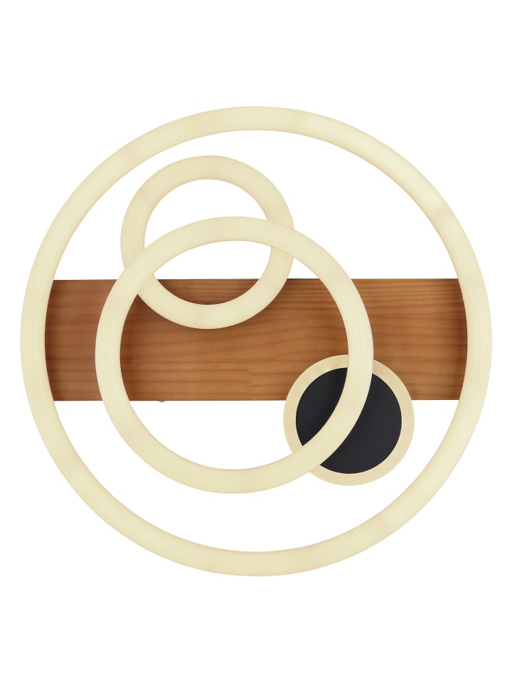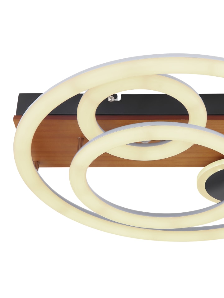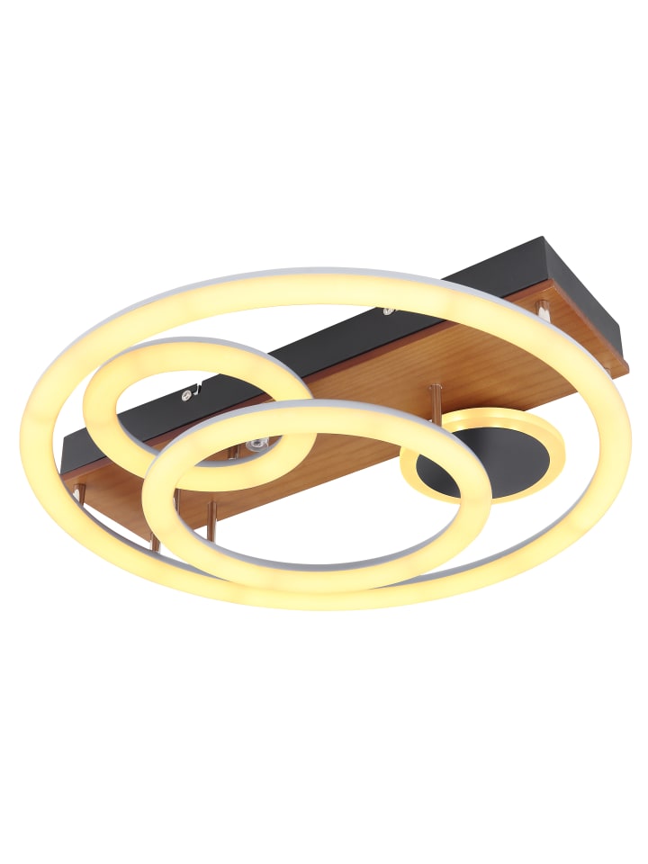 Потолочный светильник, черный металл, коричневое дерево, опаловый пластик, регулировка яркости, несколько уровней с помощью настенного переключателя, блокировка цвета, функция памяти, таймер, пульт дистанционного управления, диаметр: 480 мм, высота: 110 мм, в комплекте светодиод 55 Вт 230 В, источник света 580-5800 лм, световой поток 320-3200 лм, цветовая температура 2700-6500 К