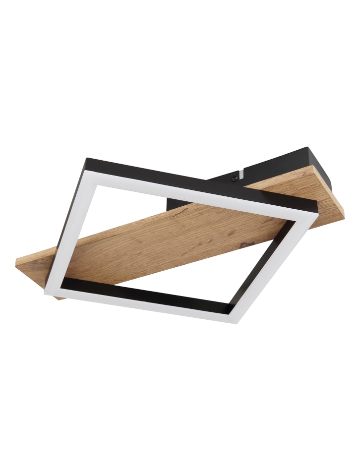 Потолочный светильник, металл матово-черный, МДФ под дерево темного цвета, пластик матово-черный, пластик опаловый, ДxШxВ: 330x310x55 мм, в комплекте светодиод 12 Вт 230 В, источник 1350 лм, световой поток 600 лм, цветовая температура 3000 К
