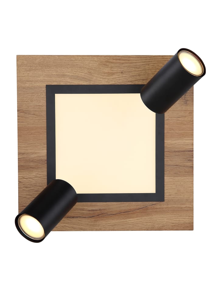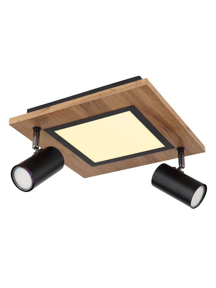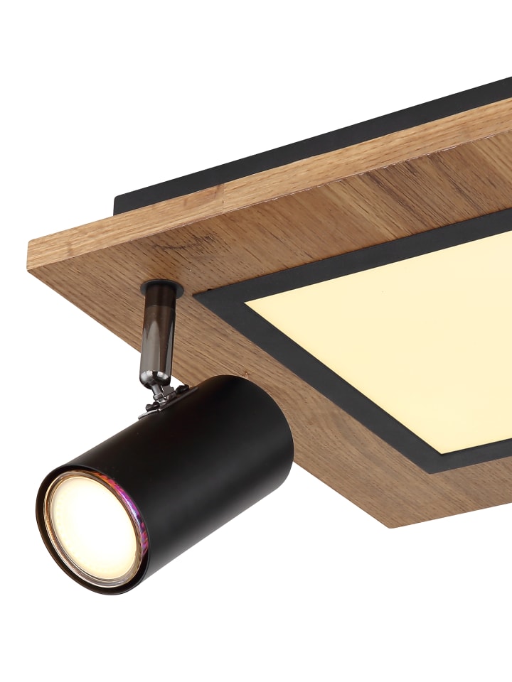 Потолочный светильник, матовый черный металл, МДФ с имитацией темного дерева, опаловый пластик, матовый черный металл, несколько настроек с помощью настенного переключателя, функция памяти, настройка 1: светодиод, настройка 2: GU10, настройка 3: оба режима одновременно, Д x Ш x В: 300 x 300 x 180 мм, включая светодиод 12 Вт 230 В, источник света 1600 лм, световой поток 1000 лм, цветовая температура 3000 К, без 2 светодиодов GU10 мощностью 5 Вт 230 В