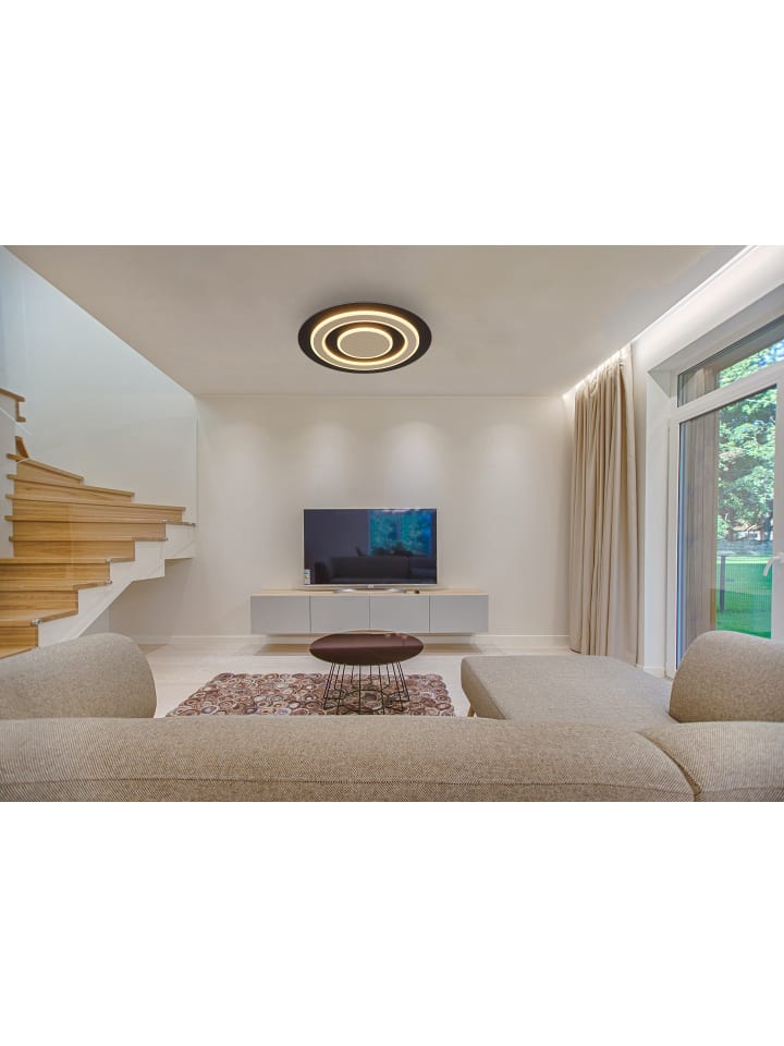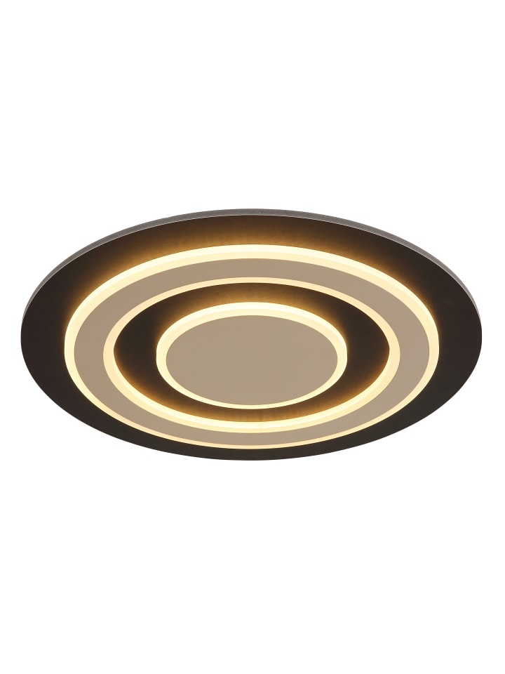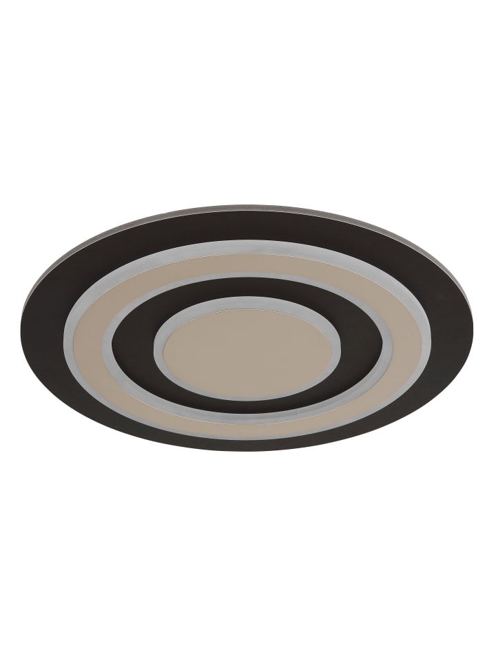 Потолочный светильник, матовый черный металл, матовый темно-коричневый МДФ, матовый металл цвета шампанского, опаловый акрил, ø: 480 мм, H: 52 мм, вкл. светодиод 40 Вт 230 В, источник 3700 лм, световой поток 1100 лм, цветовая температура 3000 К