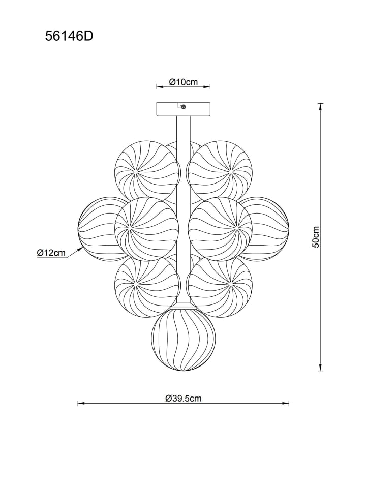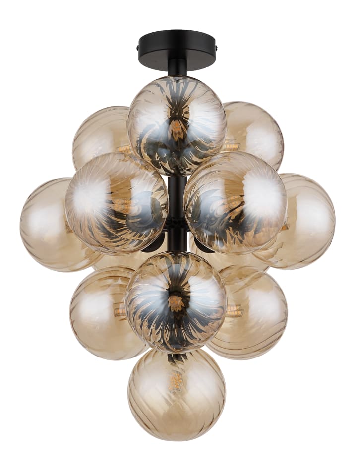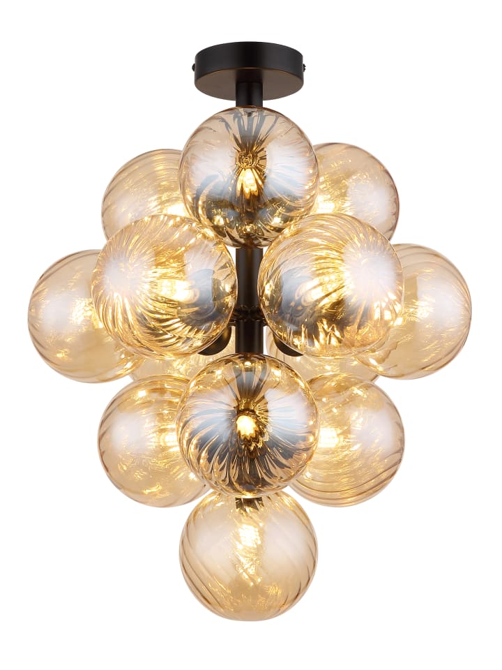 Потолочный светильник, металлический, матово-черный, плафоны из янтарного стекла, диаметр: 395 мм, высота: 500 мм, без 13 светодиодных ламп G9 4 Вт 230 В