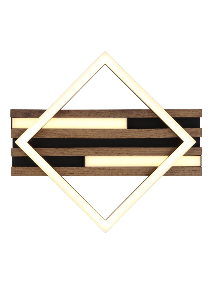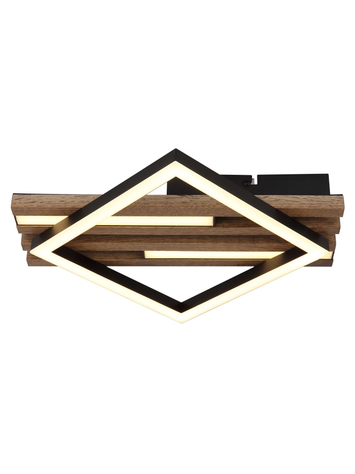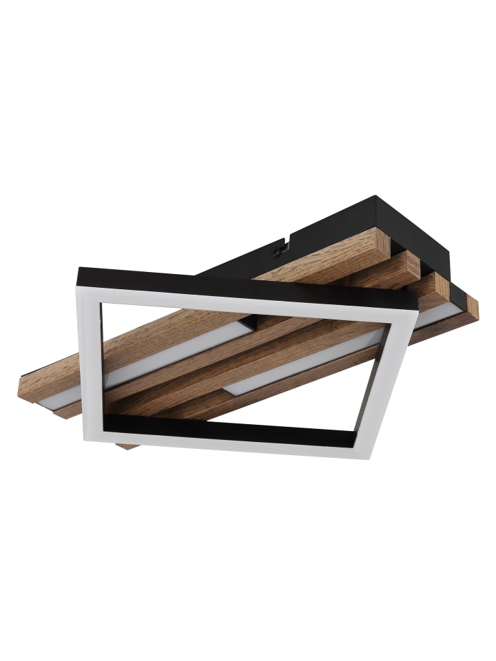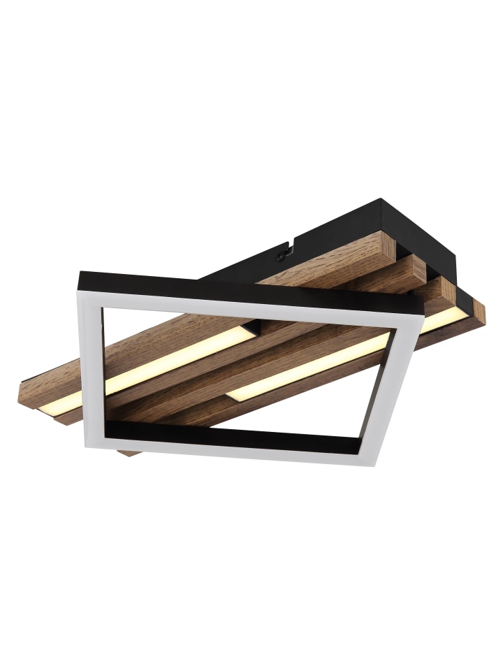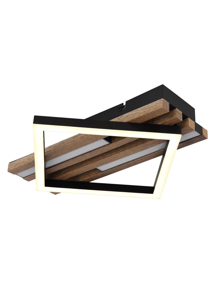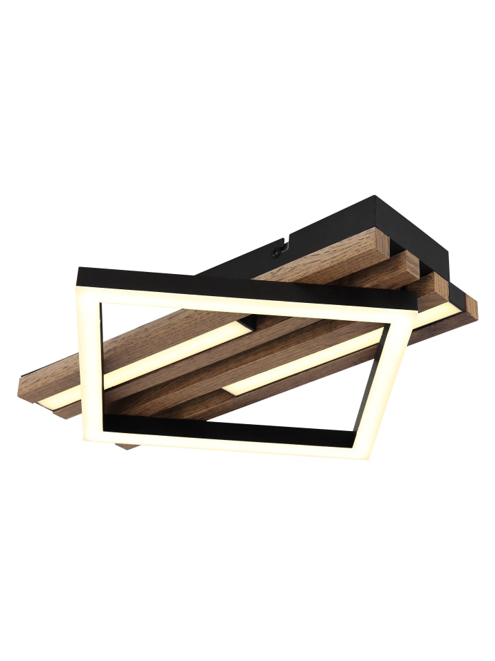 Потолочный светильник, матовый черный металл, МДФ с имитацией темного дерева, матовый черный пластик, опаловый пластик, несколько уровней яркости с помощью настенного переключателя, функция памяти, 3 уровня: только рама 670 лм - только светодиоды на панели 350 лм - оба вместе 1020 лм, Д x Ш x В: 330 x 310 x 75 мм, вкл. светодиод 19 Вт 230 В, источник 1990 лм, световой поток 1020 лм, цветовая температура 3000 К