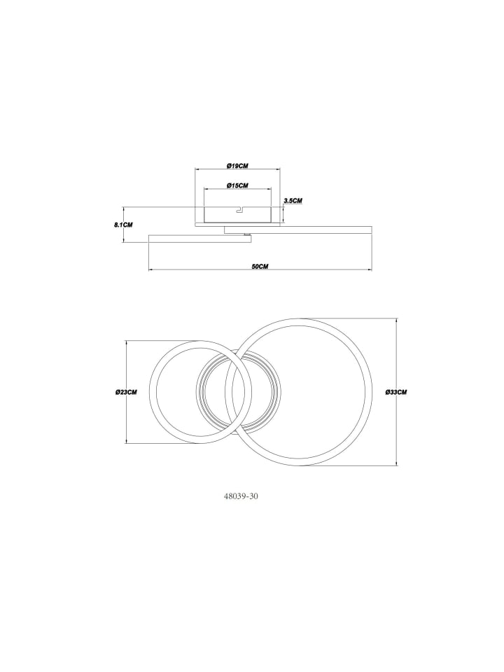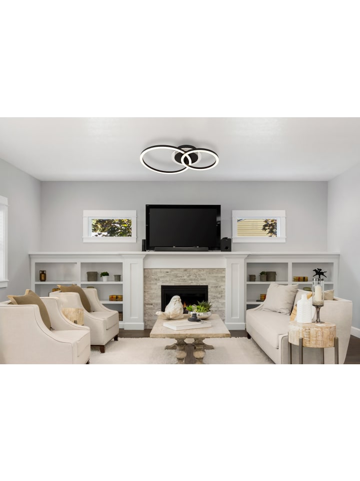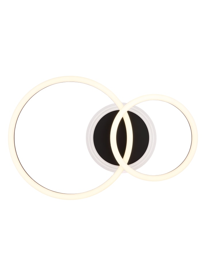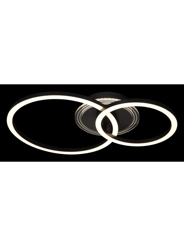 Потолочный светильник, матовый черный металл, матовый черный акрил, опаловый акрил, прозрачный акрил, несколько настроек с помощью настенного переключателя, возможность фиксации цветов, функция памяти, ДxШxВ: 500x330x81 мм, 2 кольца: диаметром 33 см и 23 см, в комплекте светодиод 30 Вт 230 В, источник света 4450 лм, световой поток 2000 лм, цветовая температура 2700/4500/6500 К
