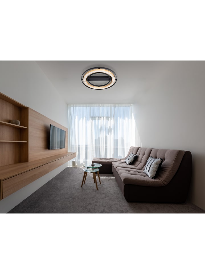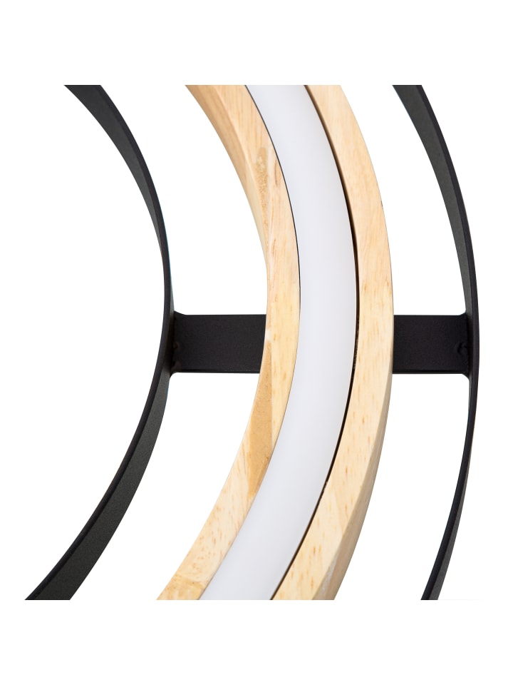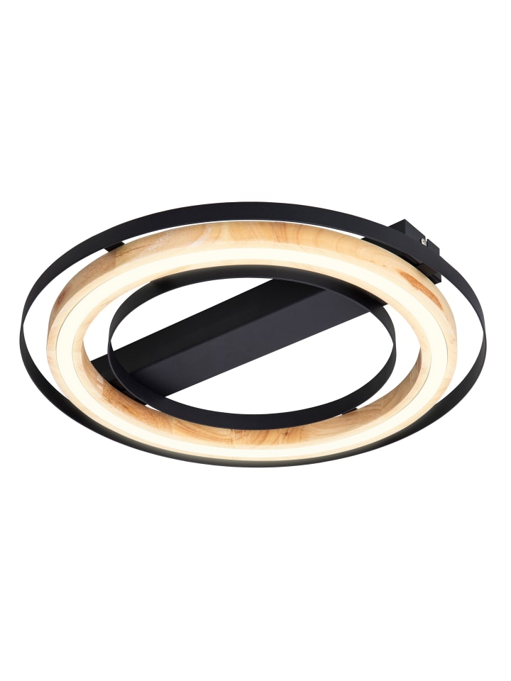 Потолочный светильник, матовый черный металл, натуральный бамбук, регулировка яркости, несколько уровней освещения с помощью настенного выключателя, диаметр: 460 мм, высота: 60 мм, в комплекте светодиод 21 Вт, 230 В, световой поток 2600 лм, цветовая температура 3000 К
