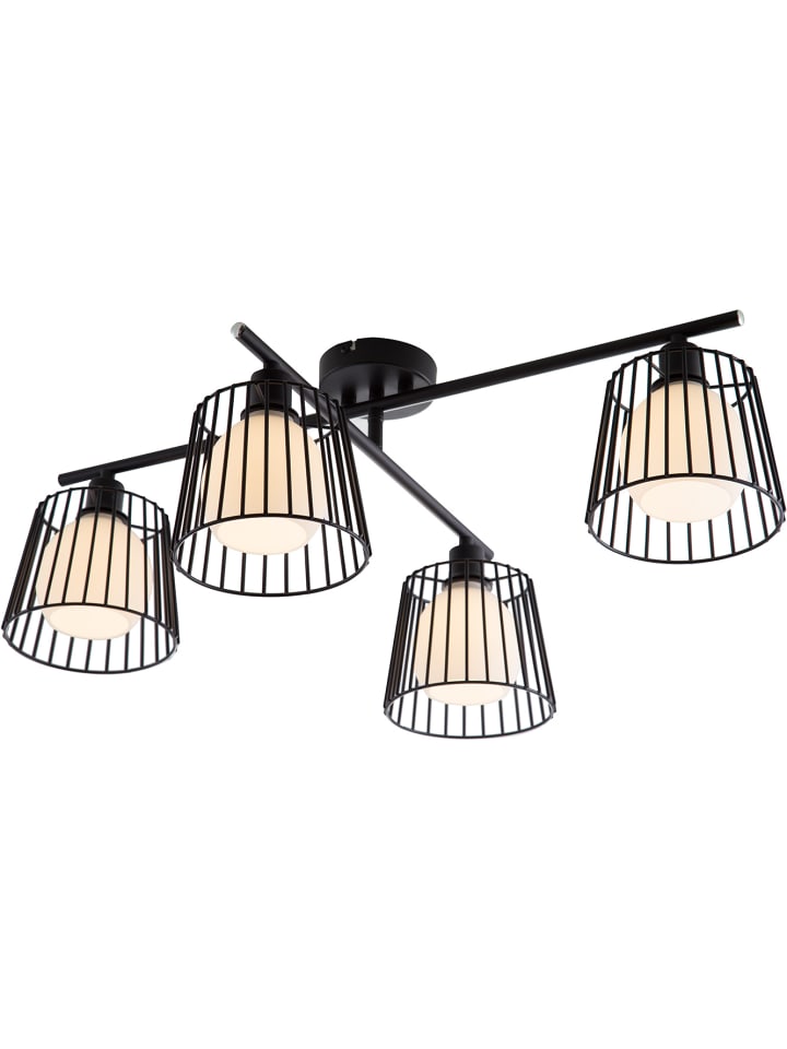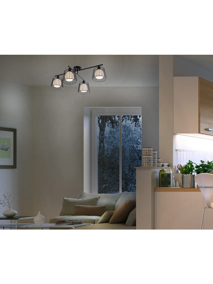 Потолочный светильник, металл, матово-черный, стекло, ДxШxВ: 500x700x260 мм, без 4 ламп E14 40 Вт 230 В