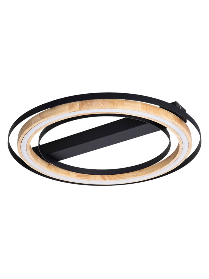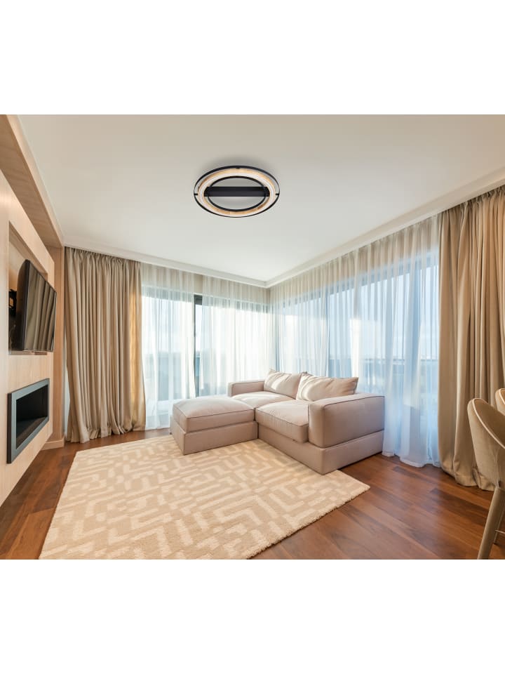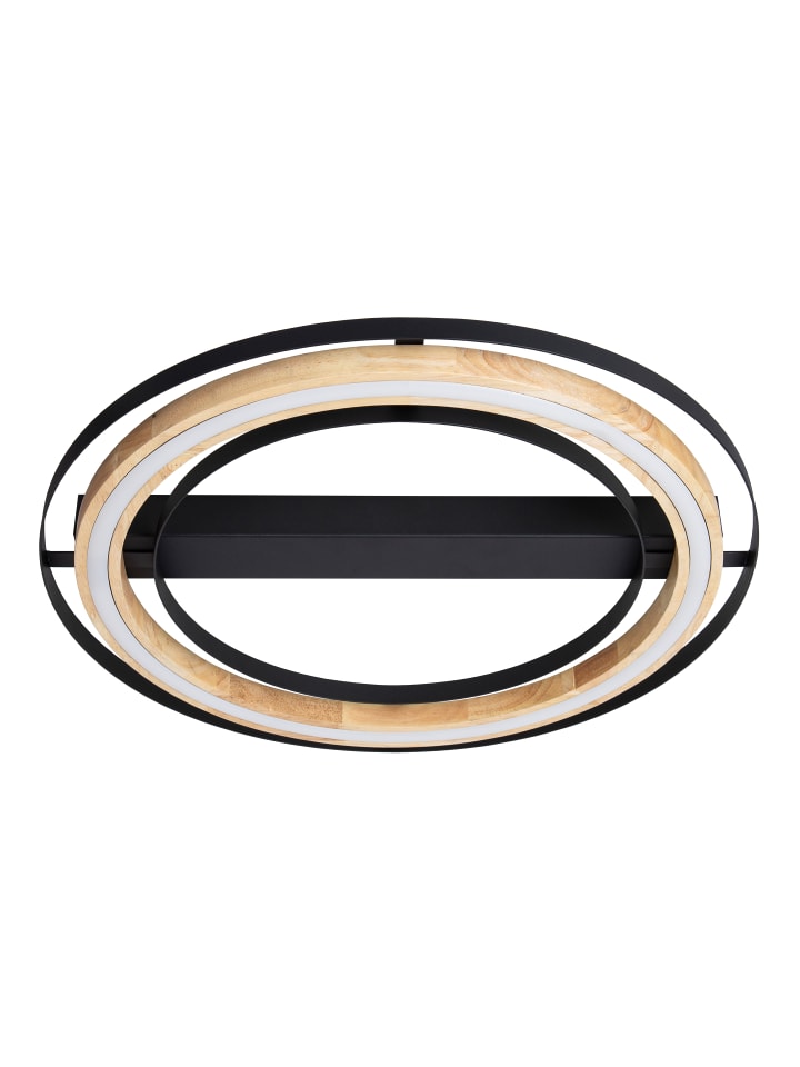 Потолочный светильник, металл, черный, бамбук, натуральный цвет, ступенчатый переключатель, 3 ступени: 15%, 50%, 100%, ø: 564 мм, H: 70 мм, рама/стойка: ø: 525 мм, в комплекте светодиод 25 Вт 230 В, световой поток 3000 лм, цветовая температура 3000 К