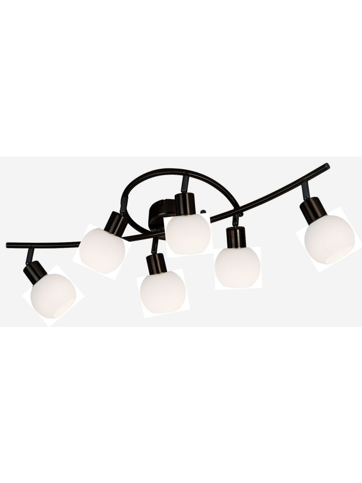 Потолочный светильник, черный металл, матовое белое стекло, вращающийся/вращающийся, ДxШxВ: 250x750x210 мм, в комплекте: 6 светодиодов E14 мощностью 5 Вт, 230 В, световой поток 430 лм, цветовая температура 3000 К
