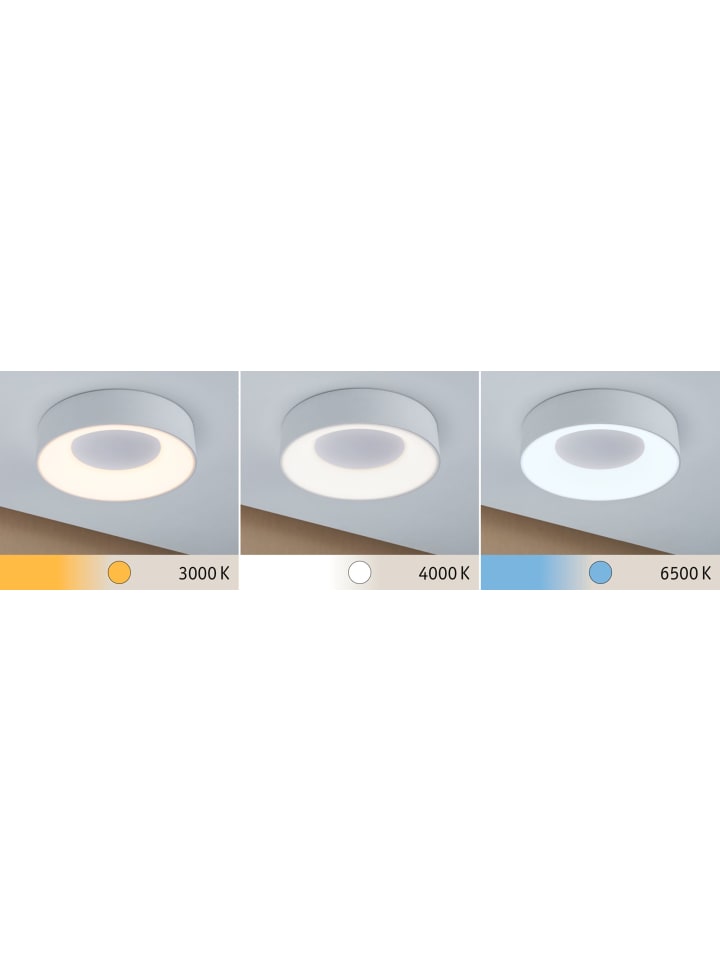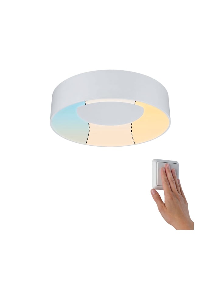 Белый потолочный светильник Casca мощностью 16 Вт обеспечивает особый световой эффект: при включении освещается только внутренний край; свет не выходит из центра. Цвет света можно регулировать на трех уровнях многократным нажатием выключателя света: Дневной белый - Просыпайтесь! Нейтральный белый - Макияж! Теплый белый - Расслабьтесь!