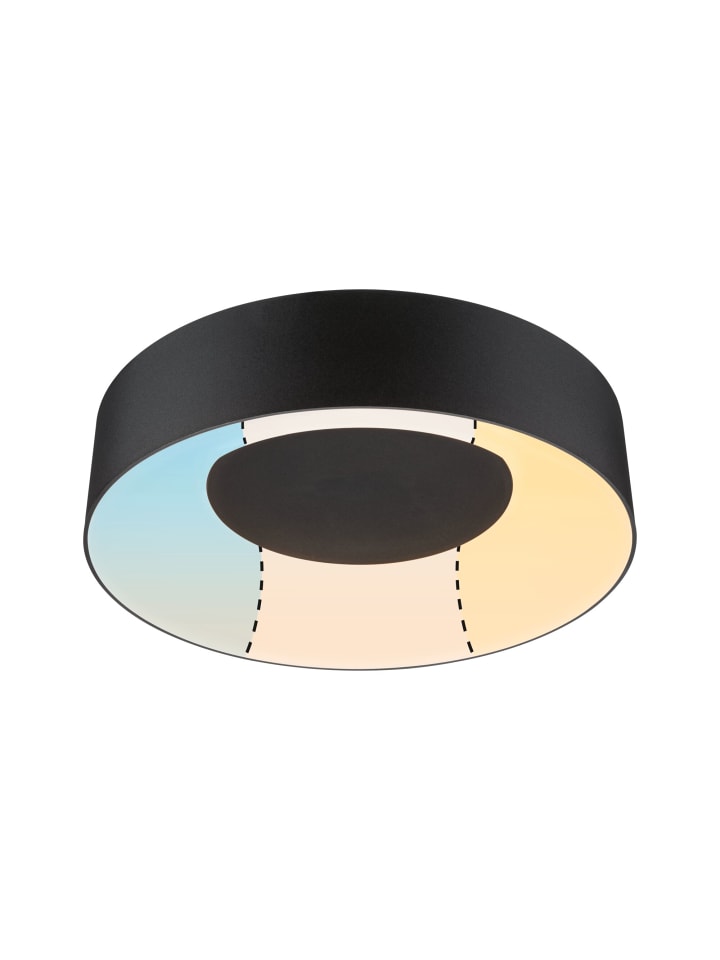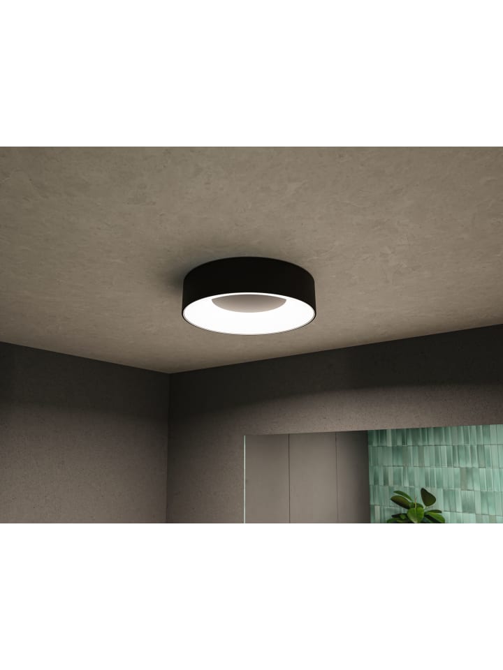 Потолочный светильник Casca матово-черного цвета мощностью 16 Вт обеспечивает особый световой эффект: при включении освещается только внутренний край; свет не выходит из центра. Цвет света можно регулировать, выбрав один из трех уровней многократным нажатием на выключатель света: Дневной белый - просыпайтесь! Нейтральный белый - накрасьтесь! Теплый белый - расслабьтесь!