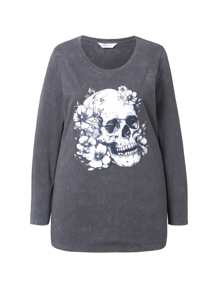 Футболка удобного кроя из предварительно выстиранного трикотажа с рисунком черепа. Круглый вырез горловины, длинные рукава.