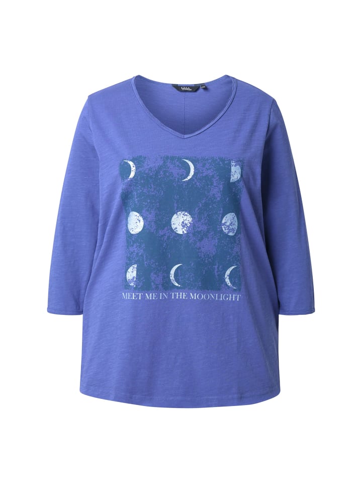 Футболка А-силуэта из мягкого трикотажа с мерцающим металлическим узором. V-образный вырез, рукава 3/4.