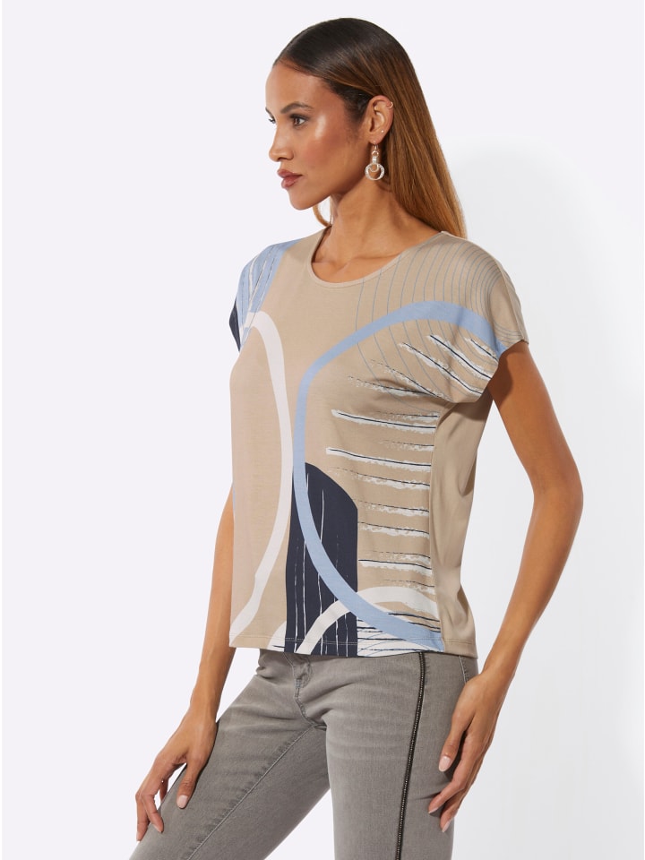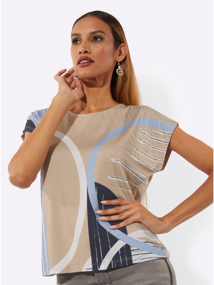 Рубашка с круглым вырезом бежево-синего цвета creation L