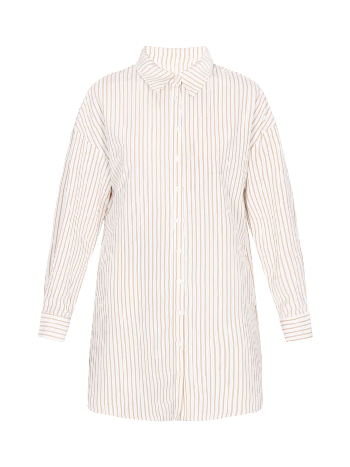 - Рубашка свободного кроя с классическим воротником и длинными рукавами