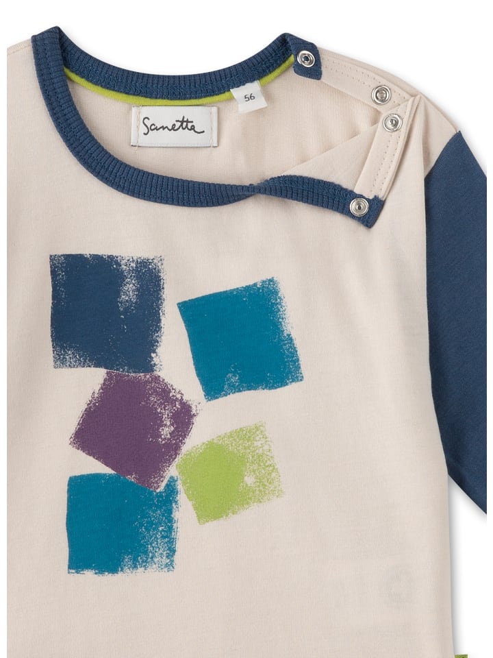 Креативная рубашка для мальчиков с яркими деталями и графическим принтом спереди от Sanetta Pure.