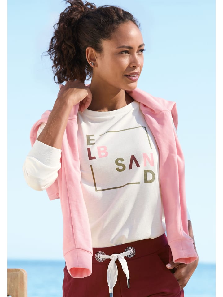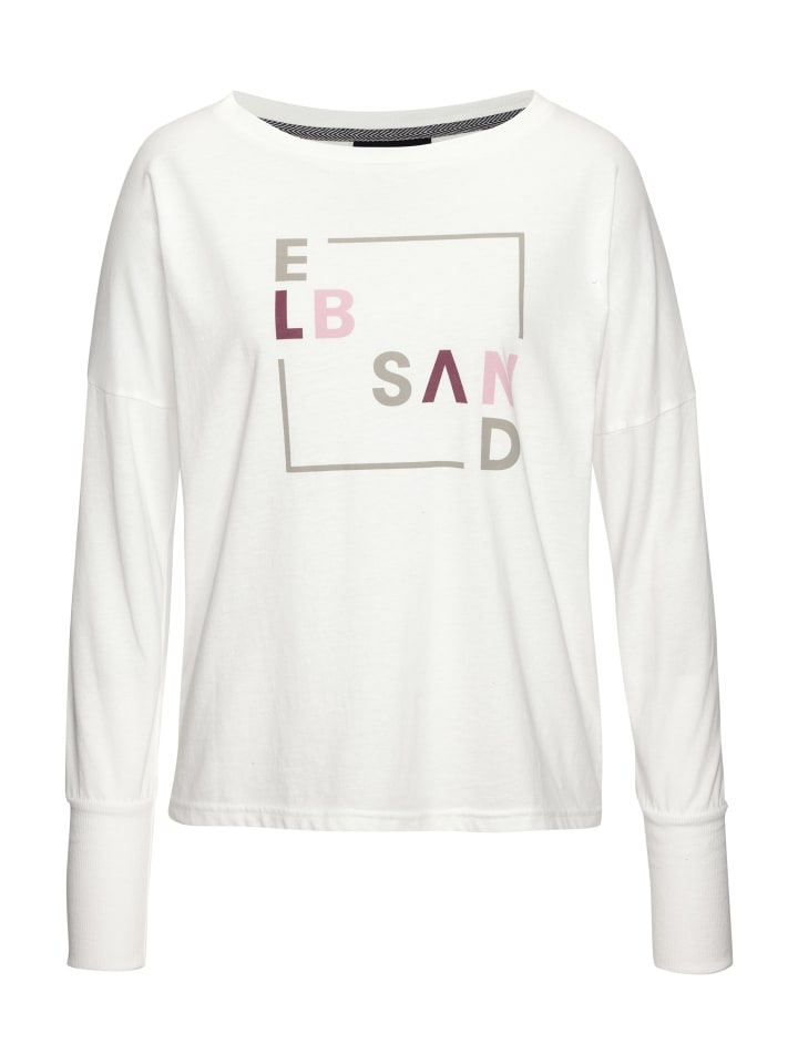 Повседневная рубашка с длинными рукавами от Elbsand. Отличительная черта: широкий круглый вырез горловины. Спущенная линия плеч и большой логотип спереди и маленький сзади на горловине. Свободный свободный крой, идеально подходит для повседневных образов. Мягкий трикотаж с добавлением хлопка.